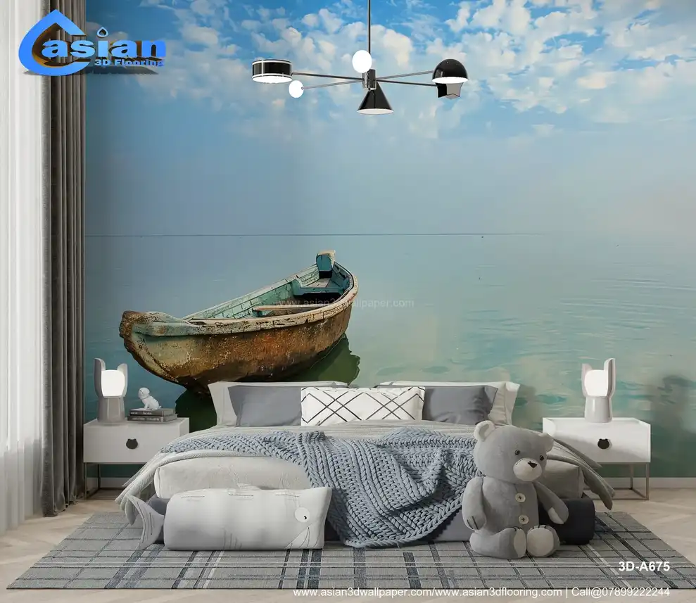 This tranquil image depicts an old wooden boat gently floating on serene waters beneath a clear blue sky. The soft reflections in the water create a peaceful atmosphere, ideal for relaxation and inspiration. Perfect for home decor, office spaces, or as a calming element in any environment. This artwork evokes a sense of calmness and connection to nature, making it a great choice for anyone looking to enhance their space with a touch of serenity. Benefits:- Adds tranquility to any space, perfect for relaxation environments, enhances natural decor