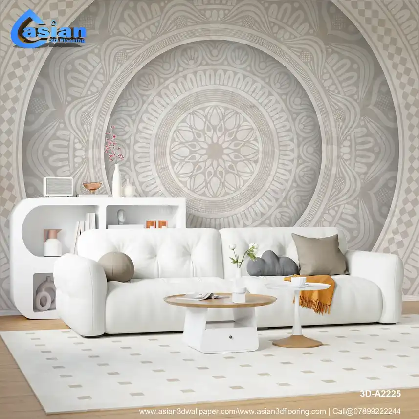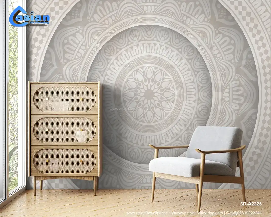 Serene Mandala: Intricate Circular Design Wall Mural in Neutral Tones||3D-A2225