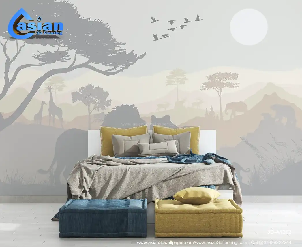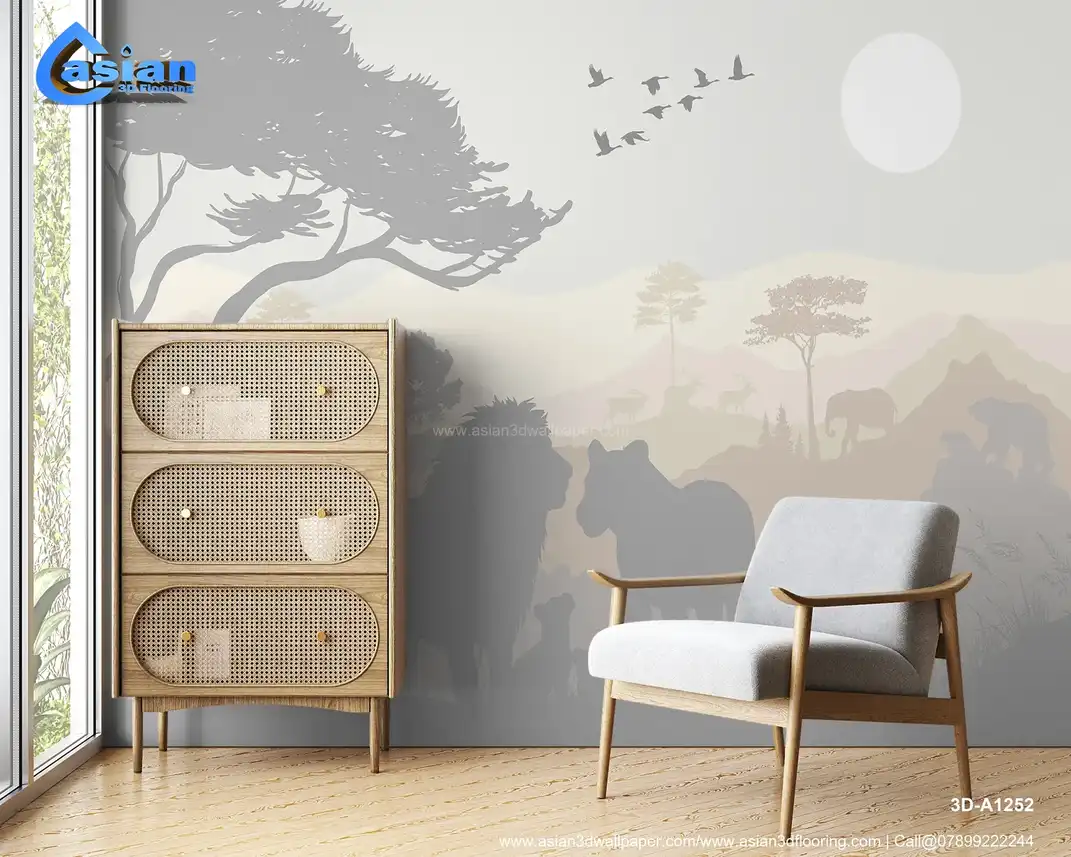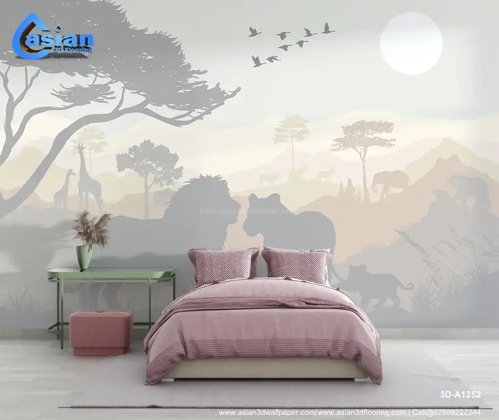 Immerse yourself in the beauty of the wild with this stunning wallpaper featuring the silhouettes of majestic animals such as lions, giraffes, elephants, and more. The soft color palette of pastels and earthy tones creates a serene atmosphere, perfect for adding a touch of nature to any room. The design evokes the tranquility of the savannah, bringing the wonders of the animal kingdom into your home. Ideal for nature lovers, safari-themed rooms, or children's spaces. Benefits:- This stunning wildlife wallpaper features the silhouettes of iconic animals like lions and elephants, perfect for a safari or nature-inspired space.
