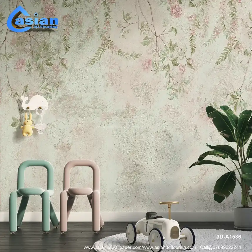 This elegant wallpaper features soft floral motifs and delicate green leaves, set against a gentle pastel green backdrop. The light pink flowers add a touch of romantic charm, perfect for creating a serene atmosphere in your bedroom, living room, or any space in need of a fresh, airy look. Benefits:- Perfect for creating a tranquil and romantic atmosphere, this wallpaper adds soft elegance with its gentle floral and leaf design. Ideal for bedrooms or living rooms looking for a fresh, light, and airy touch.