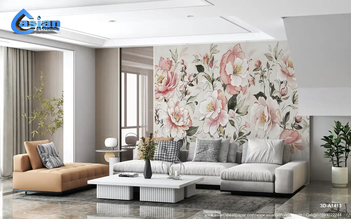 Soft Pink Floral Watercolor Wallpaper Design||3D-A1413