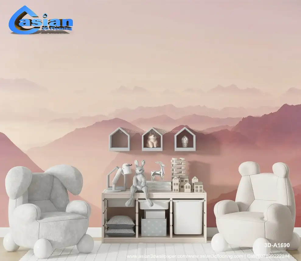 A soft pink misty mountain landscape wallpaper offering a tranquil, warm, and calming atmosphere. The gentle pastel pink hues create an inviting space perfect for relaxation and peace. Benefits:- Creates a soft, relaxing ambiance with its soothing pink tones and misty mountain views, perfect for a peaceful home atmosphere.