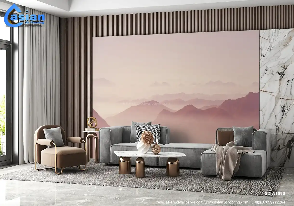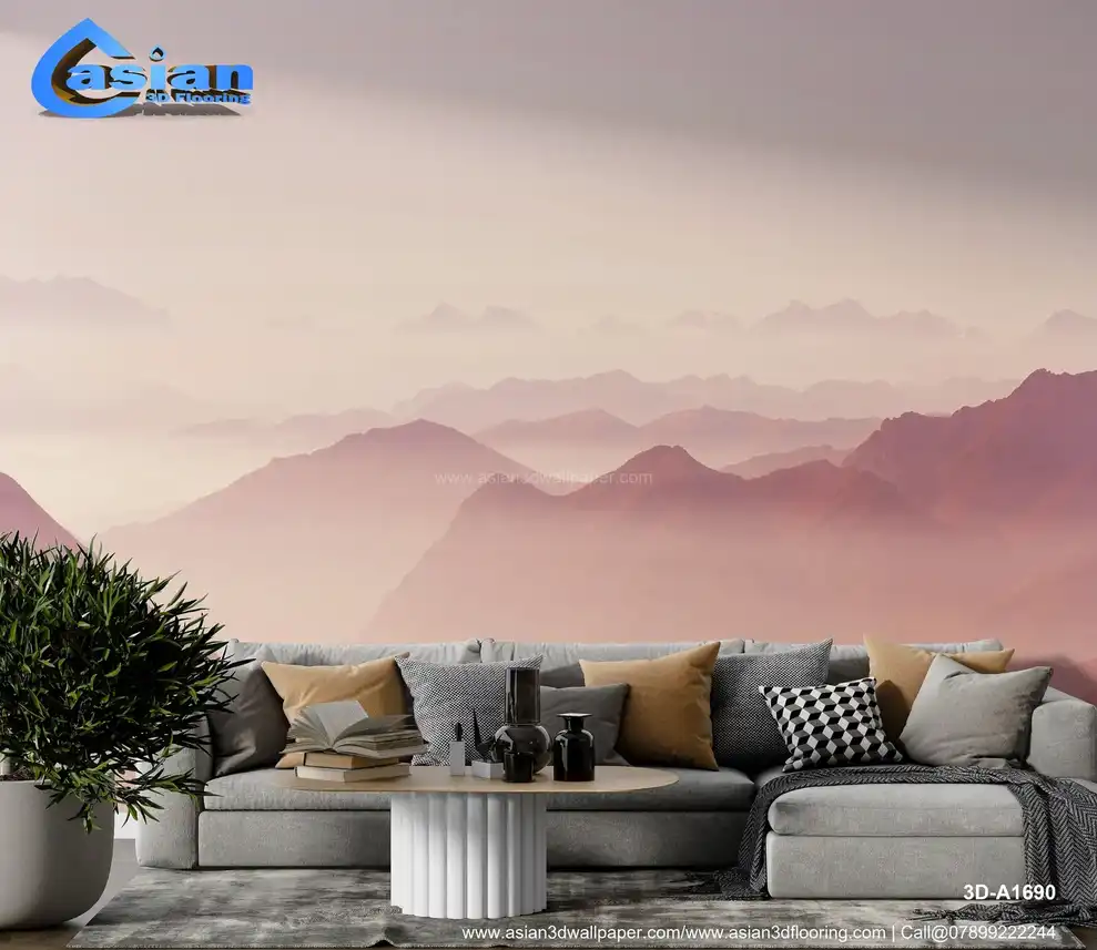 Soft Pink Misty Mountain Landscape Wallpaper||3D-A1690