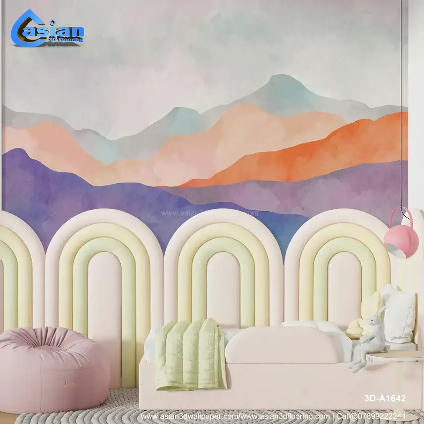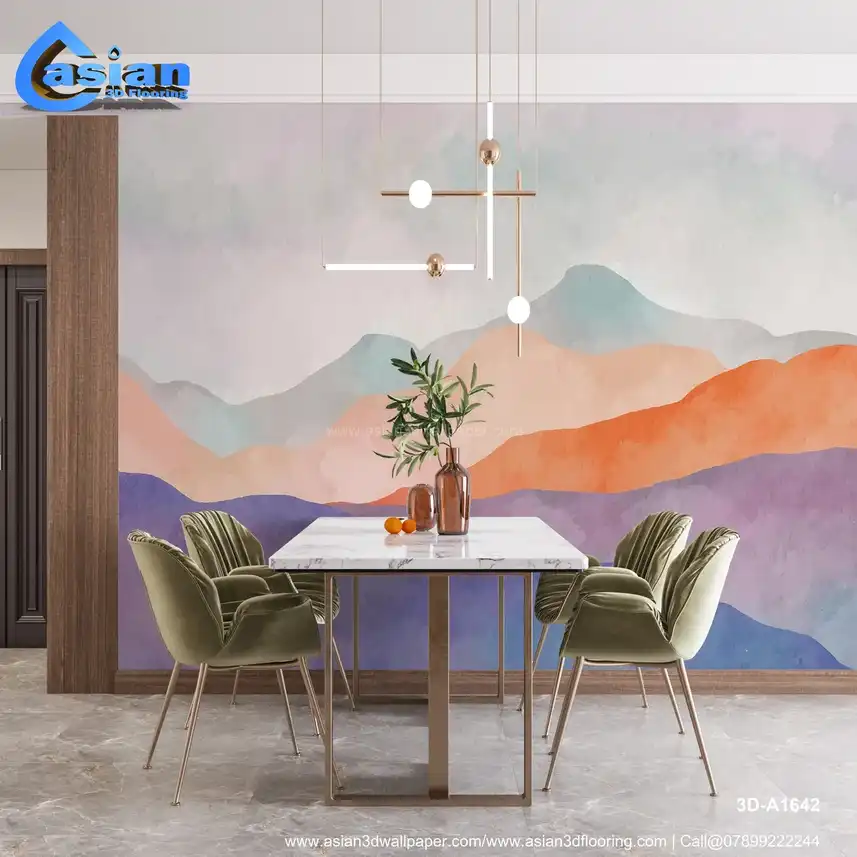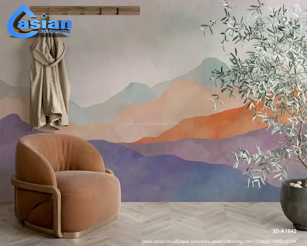 This serene watercolor wallpaper features a soft, abstract mountain landscape with fluid transitions of muted oranges, purples, and greens. Ideal for creating a calming environment, it adds a touch of modern elegance to any space, whether it's a bedroom, living room, or office. Perfect for those seeking a minimalist and peaceful atmosphere. Benefits:- Adds tranquility and modern elegance to any room with its soft watercolor mountain design.