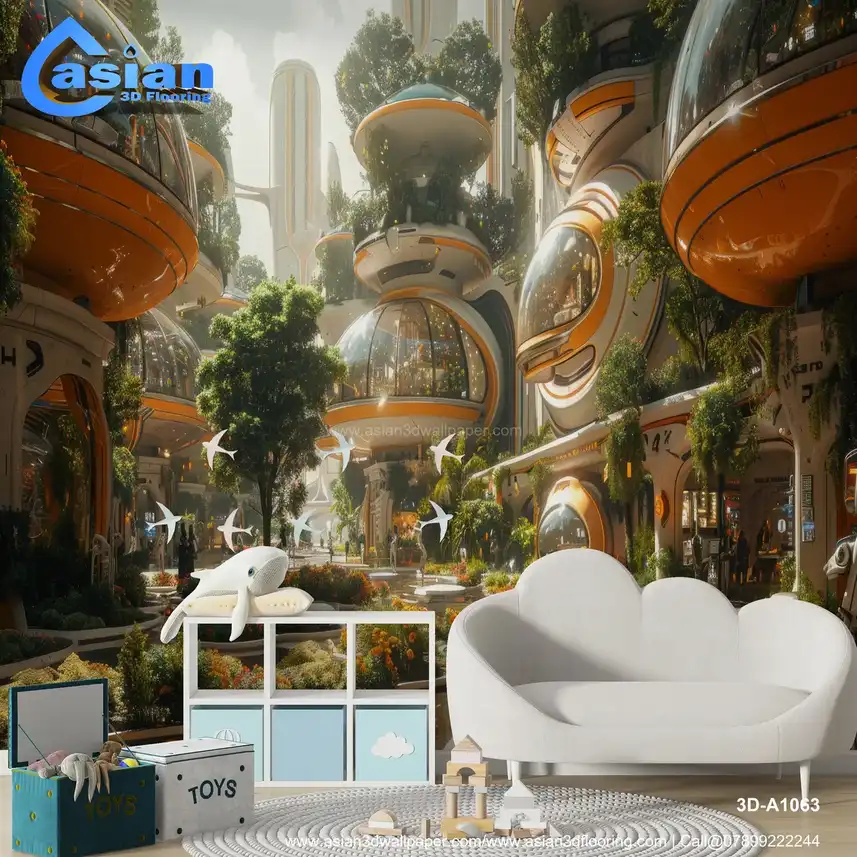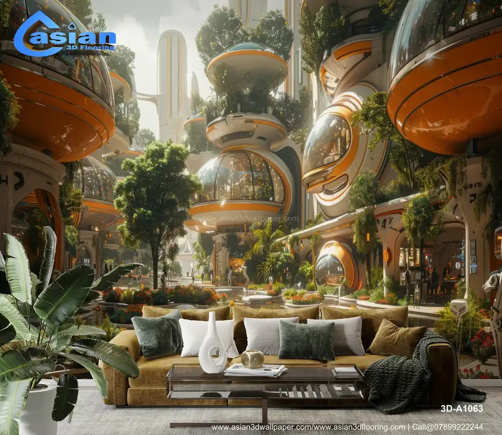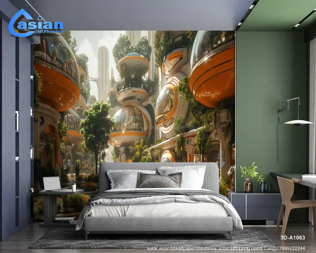 Solarpunk Cityscape - Futuristic Architecture and Lush Greenery - Utopian City Design||3D-A1063