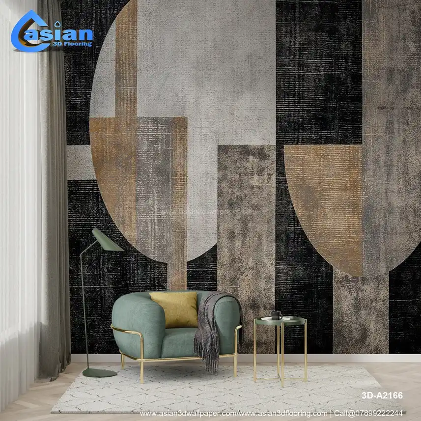 Elevate your interior with this modern abstract geometric wall mural. Featuring a striking design of interlocking shapes in black, grey, beige, and gold, it creates a sophisticated and contemporary atmosphere. Perfect for living rooms, dining areas, or a stylish home office. Made with premium, durable materials for easy installation and long-lasting appeal. Find the perfect size for your wall and learn how to install it like a pro. Visit our Bangalore, Vijayanagar, Majestic store to see this stunning mural in person and get expert advice from our team! Benefits:- Adds a touch of modern sophistication to any room. Creates a focal point and enhances the overall aesthetic. Made with high-quality, durable materials. Easy to install and remove, making it suitable for various spaces and design preferences. Transforms your space with minimal effort.