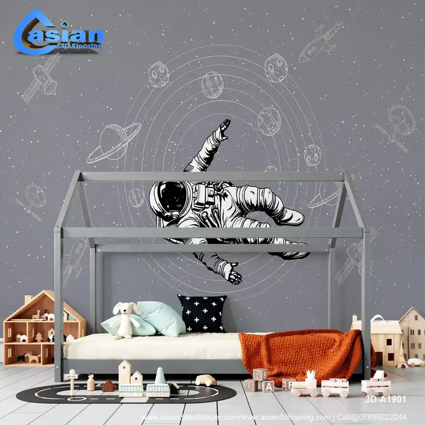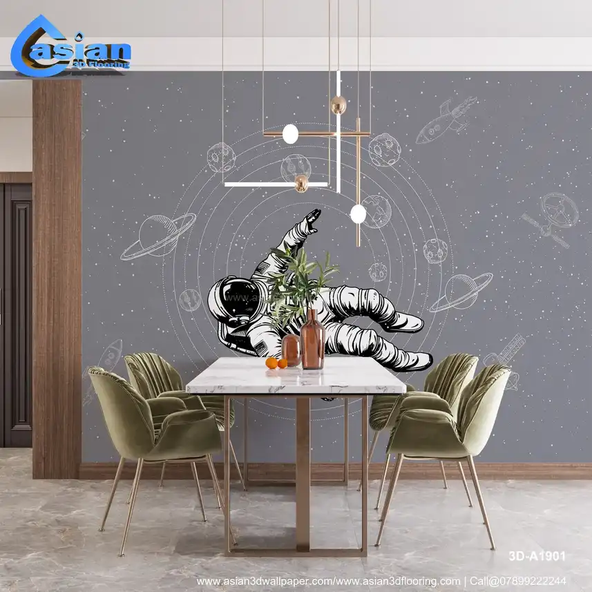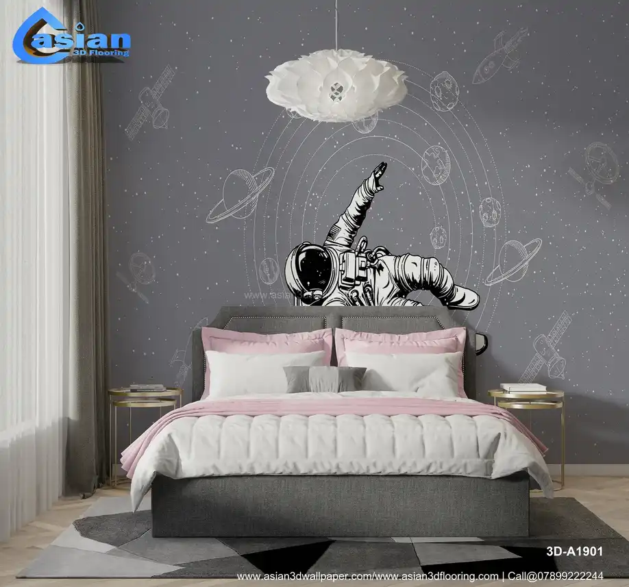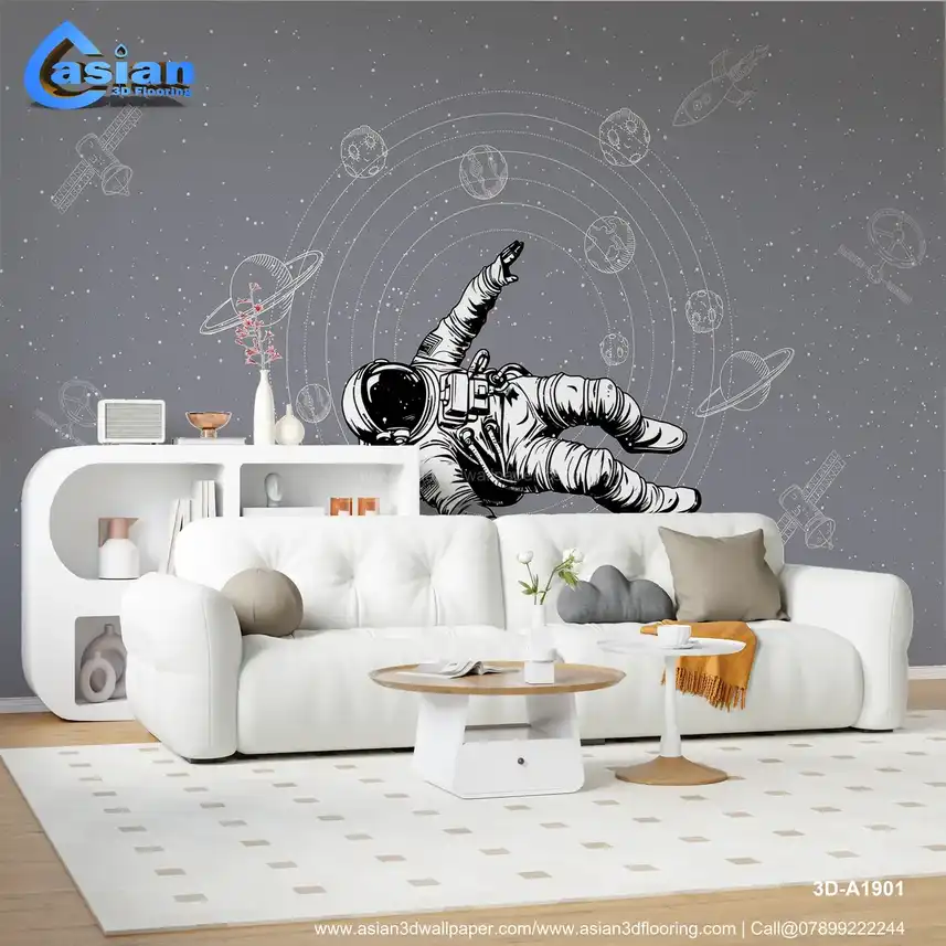 Space Themed Astronaut Wallpaper with Grey Background||3D-A1901