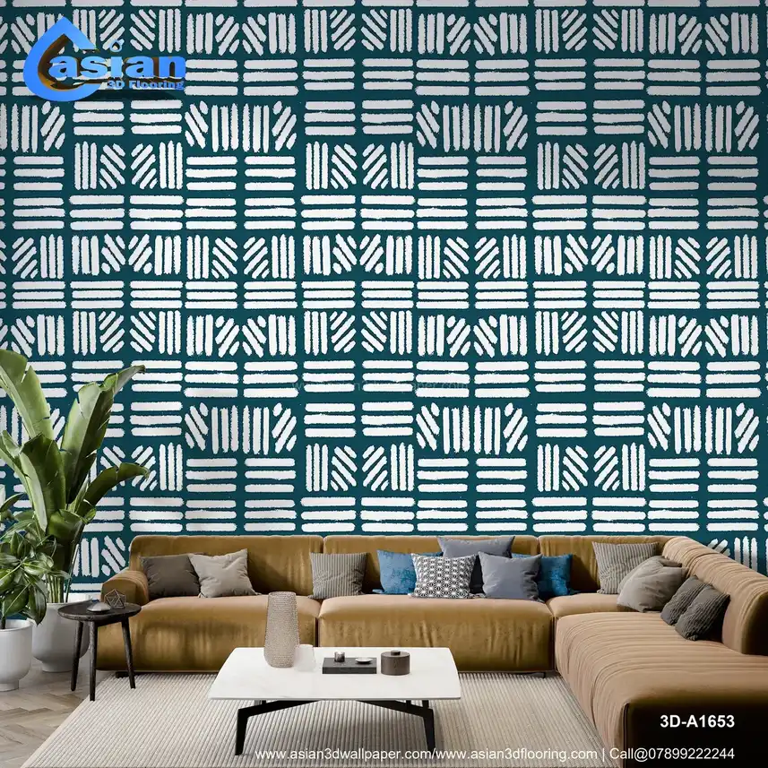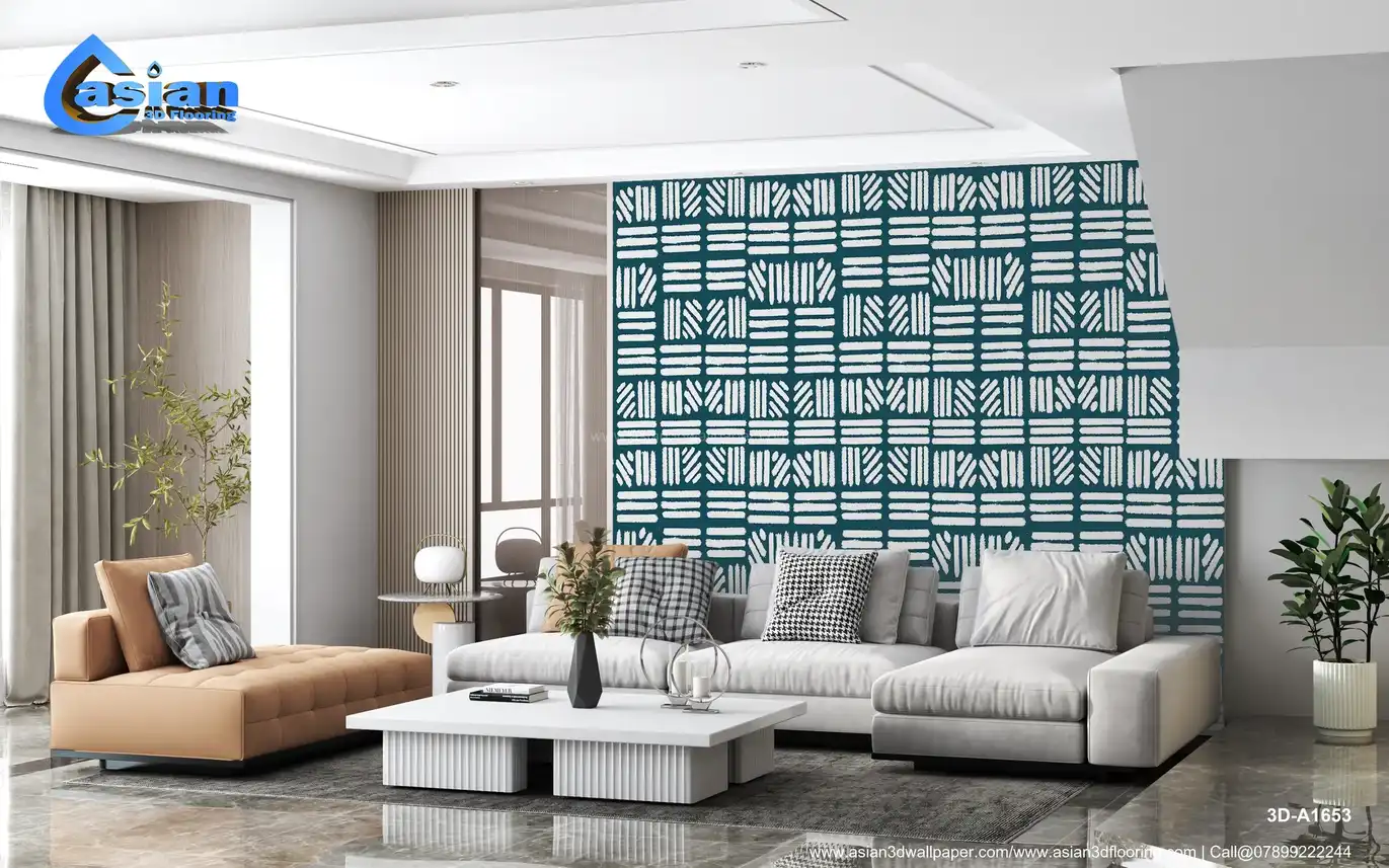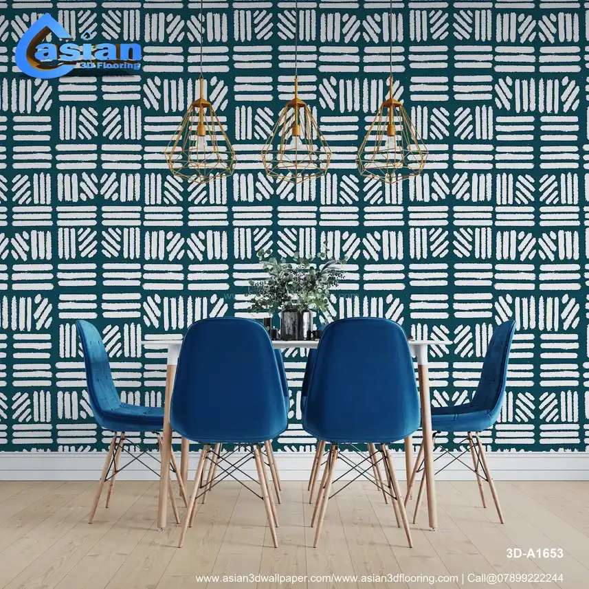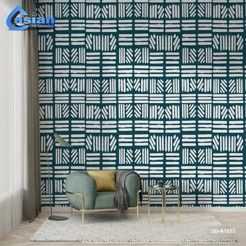 Teal Geometric Lines Pattern Wallpaper||3D-A1653