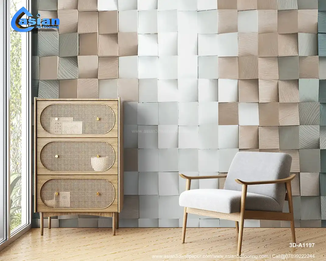 Textured Wood Tile Wallpaper - Natural Elegance||3D-A1197