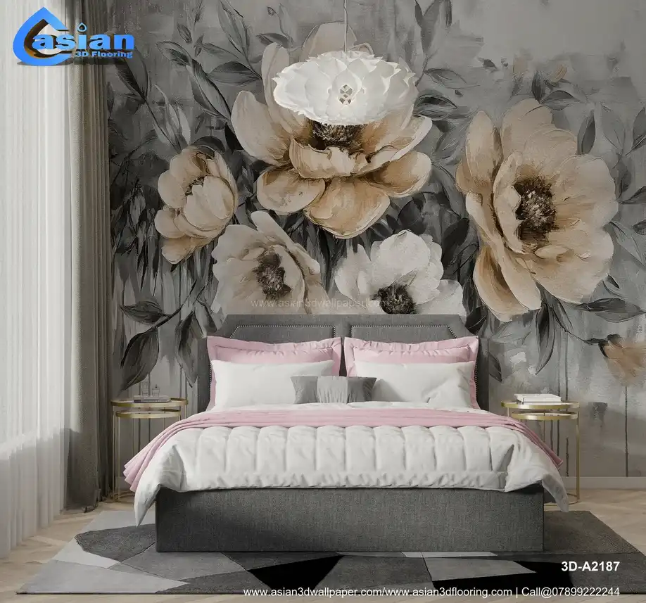 Add a touch of timeless charm and understated elegance to your space with this floral wall mural featuring beige, brown, and white peonies. The detailed painting style and textured grey and white background create a sophisticated and versatile look. Perfect for living rooms, bedrooms, dining rooms, or any space that needs a touch of warmth. Made with high-quality, durable materials for easy installation and long-lasting beauty. Visit our Bangalore, Vijayanagar, Majestic store to explore our collection of floral and neutral-toned wall murals. Benefits:- Adds a touch of timeless charm, warmth, and understated elegance to your space. Creates a sophisticated and versatile atmosphere. Made with high-quality, durable materials. Easy to install and remove. Transforms your space with a beautiful and classic floral design in a neutral color palette.