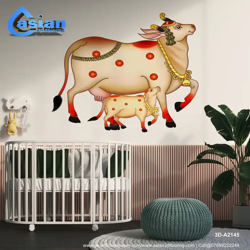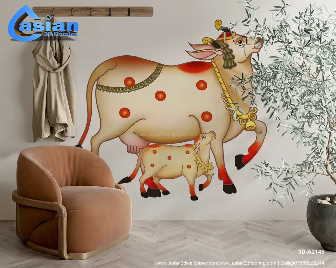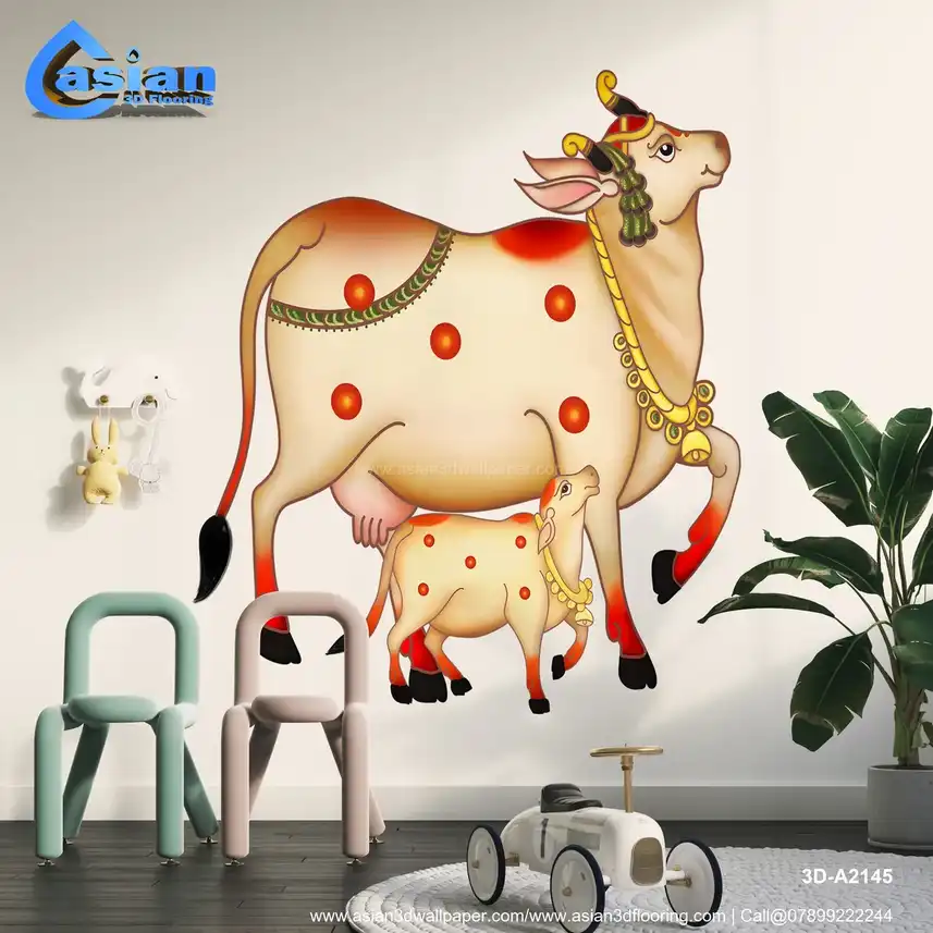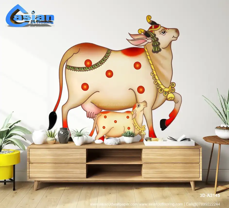 Traditional Pichwai Cow and Calf Painting - Sacred Indian Art - Digital Print||3D-A2145