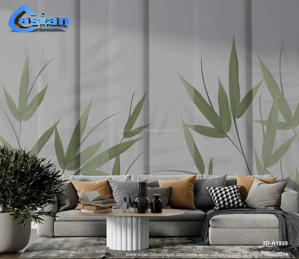 This minimalist wallpaper design features soft green bamboo leaves casting delicate shadows on a light grey background. The serene and peaceful aesthetic creates a calming atmosphere in any space. Ideal for living rooms, bedrooms, or offices, this wallpaper brings a touch of nature indoors while maintaining a contemporary, stylish look. Benefits:- Transform your living space with this tranquil bamboo shadow wallpaper, offering a calming and natural look. The soft grey backdrop with green bamboo leaves creates a peaceful atmosphere perfect for relaxation.