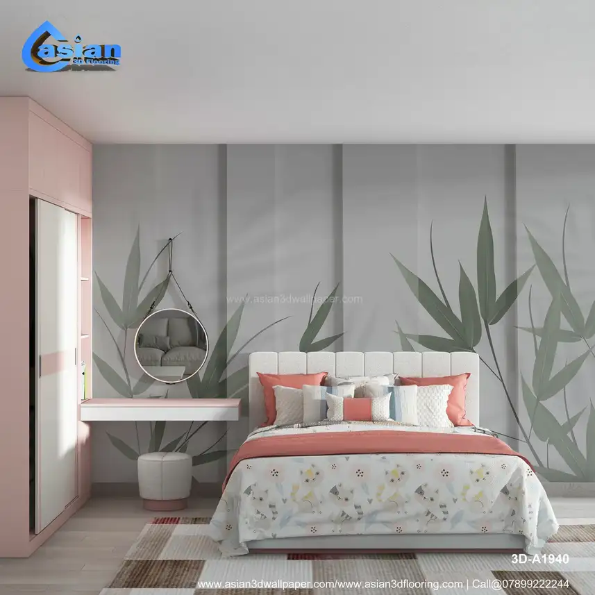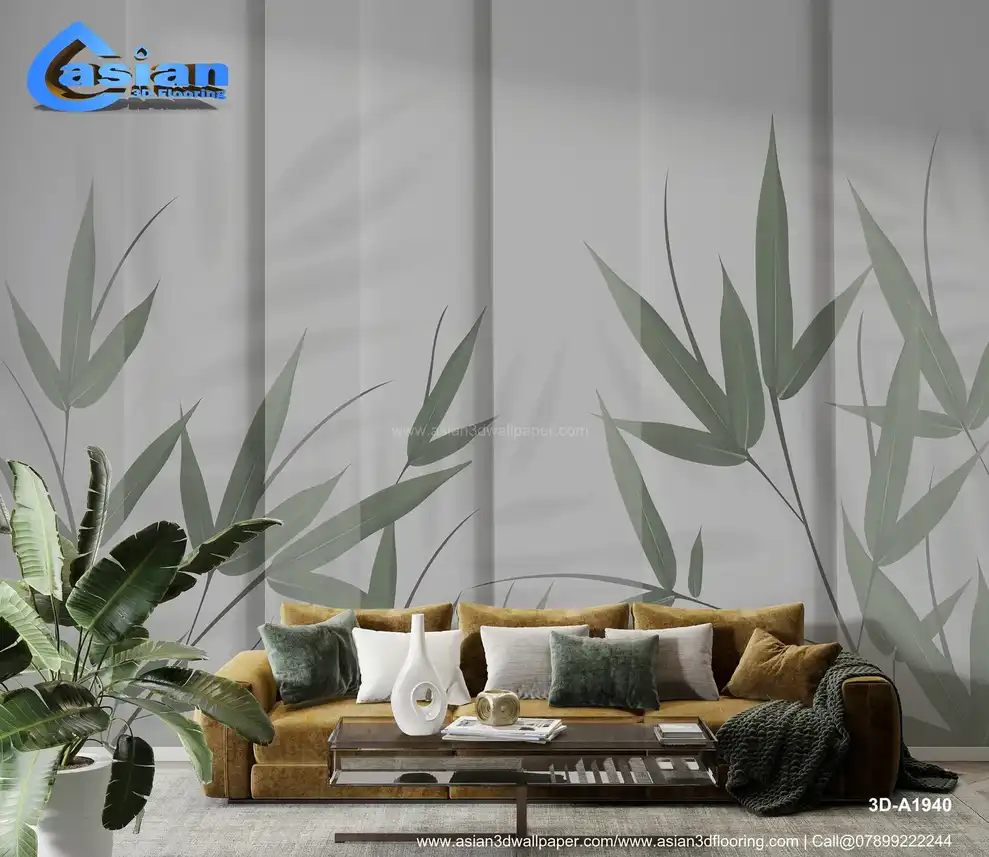 This minimalist wallpaper design features soft green bamboo leaves casting delicate shadows on a light grey background. The serene and peaceful aesthetic creates a calming atmosphere in any space. Ideal for living rooms, bedrooms, or offices, this wallpaper brings a touch of nature indoors while maintaining a contemporary, stylish look. Benefits:- Transform your living space with this tranquil bamboo shadow wallpaper, offering a calming and natural look. The soft grey backdrop with green bamboo leaves creates a peaceful atmosphere perfect for relaxation.