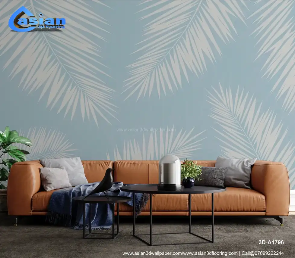 Tranquil Blue Tropical Palm Leaf Wallpaper||3D-A1796
