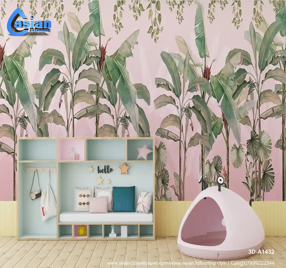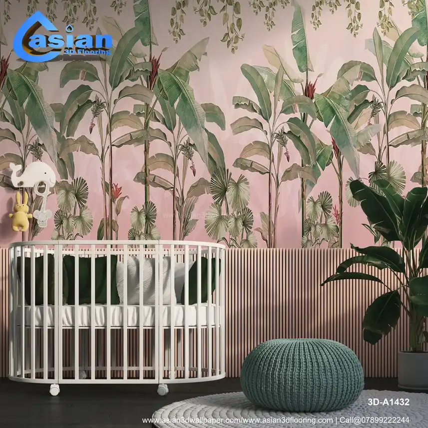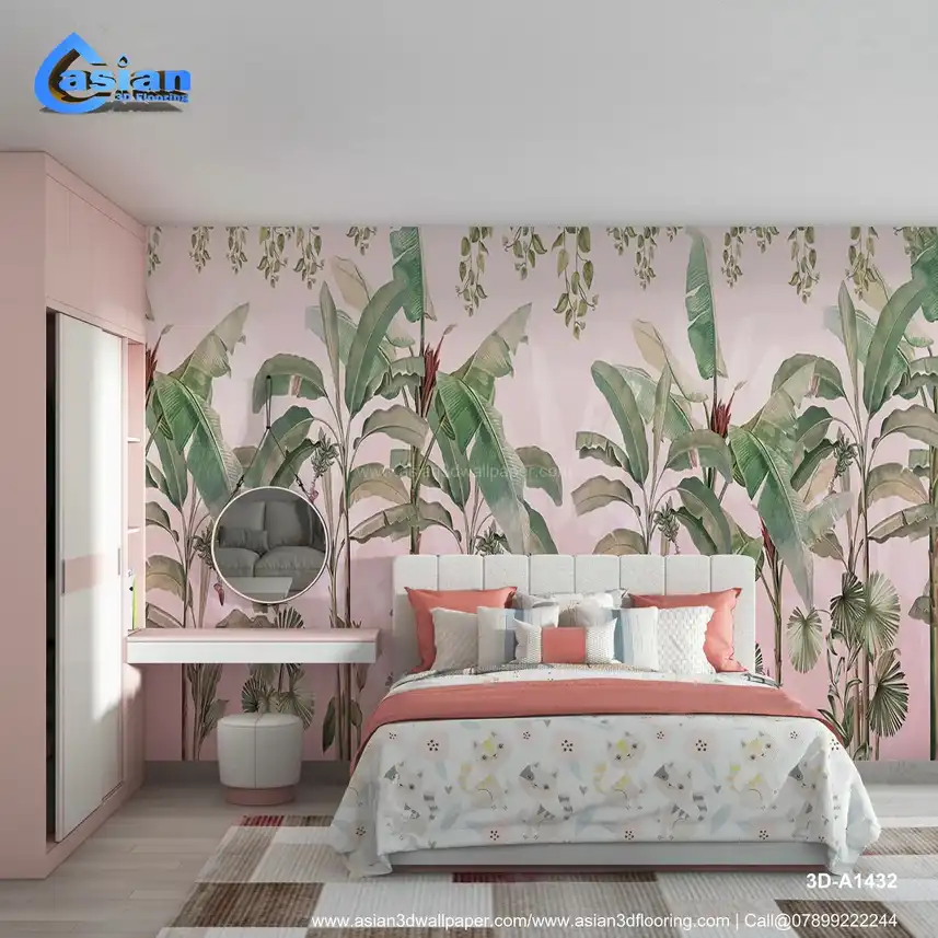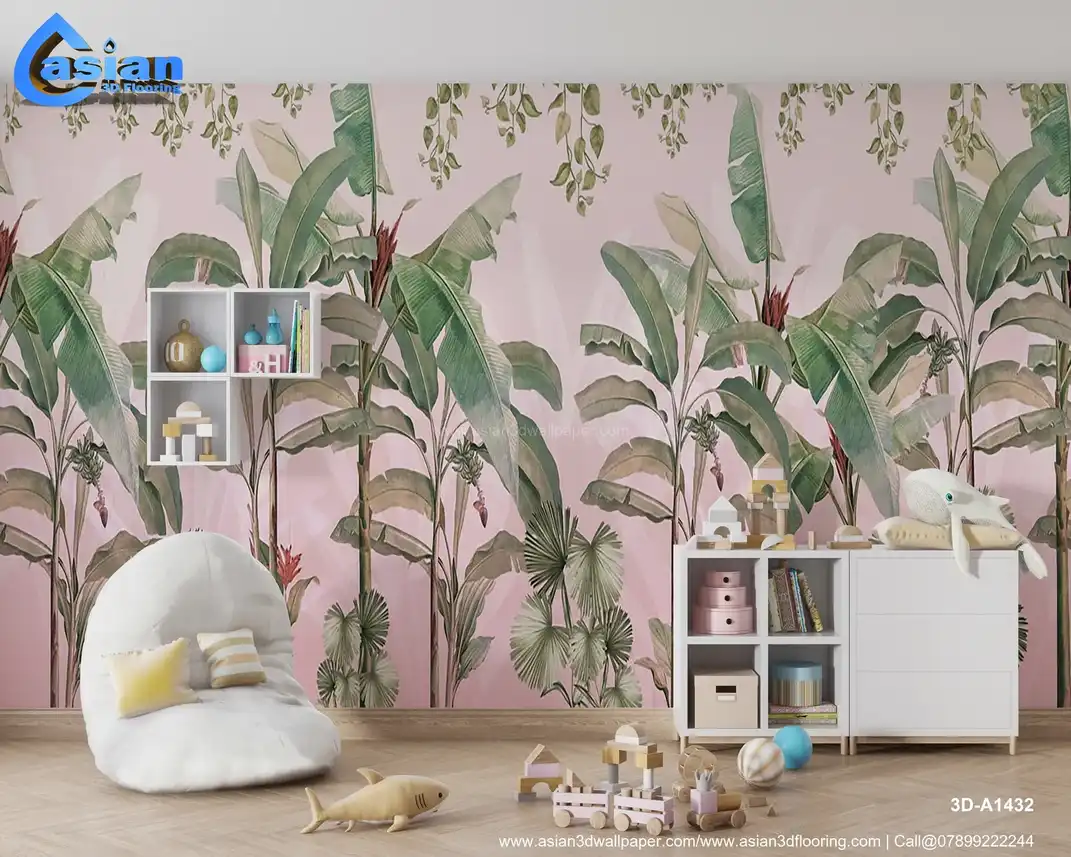 This stunning tropical wall mural features lush banana leaves and greenery set against a soft pink background. The intricate foliage brings the beauty of the tropics into your space, creating a calm, refreshing ambiance. Ideal for living rooms, bedrooms, or even offices, this wall mural adds a touch of nature?s tranquility to any room. The blend of vibrant greens with the soft pink backdrop brings a warm, tropical feel to your home or workspace. Benefits:- Adds a refreshing tropical vibe with its lush foliage and calming pink backdrop, ideal for creating a relaxing, nature-inspired ambiance.