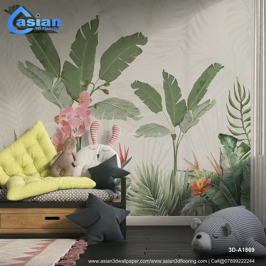 A vibrant tropical wallpaper featuring lush green leaves and beautiful orchids in pink and colorful flowers. Perfect for creating a lively and fresh atmosphere in any room, ideal for nature lovers and those looking to add tropical flair to their d?cor. Benefits:- This lively design brings a refreshing tropical feel to any space, making it perfect for living rooms, bedrooms, and offices. The vibrant flowers and greenery create a calming yet vibrant ambiance.