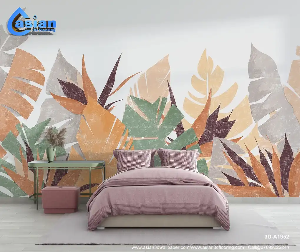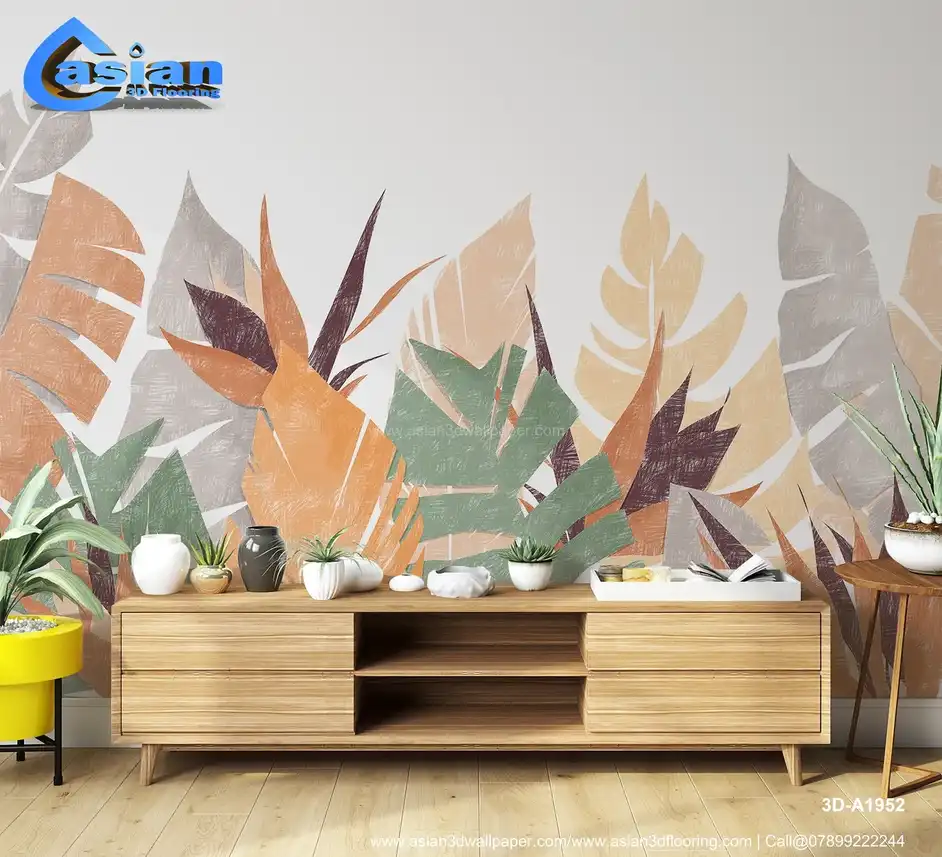 This tropical wallpaper features a stunning blend of autumn-inspired colors such as orange, green, beige, and brown, showcasing stylized tropical leaves. The design evokes a warm, cozy atmosphere perfect for adding depth and texture to modern or bohemian-inspired interiors. The combination of earthy tones and bold leaf shapes brings a touch of nature to your living room, bedroom, or dining area, creating a relaxed yet vibrant environment. Ideal for those who want to incorporate natural elements with an autumn twist. Benefits:- This tropical wallpaper brings the warmth and beauty of autumn indoors, combining bold leaf patterns with cozy, earthy tones. Perfect for modern and boho-inspired spaces.