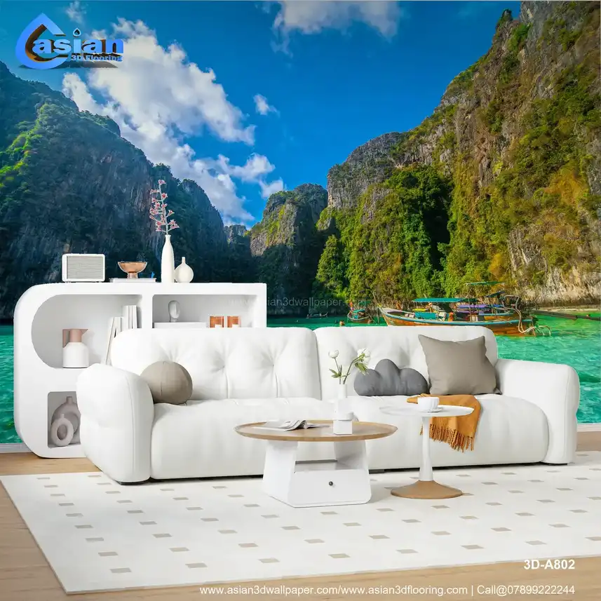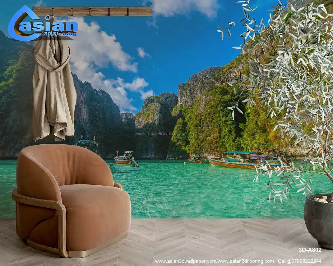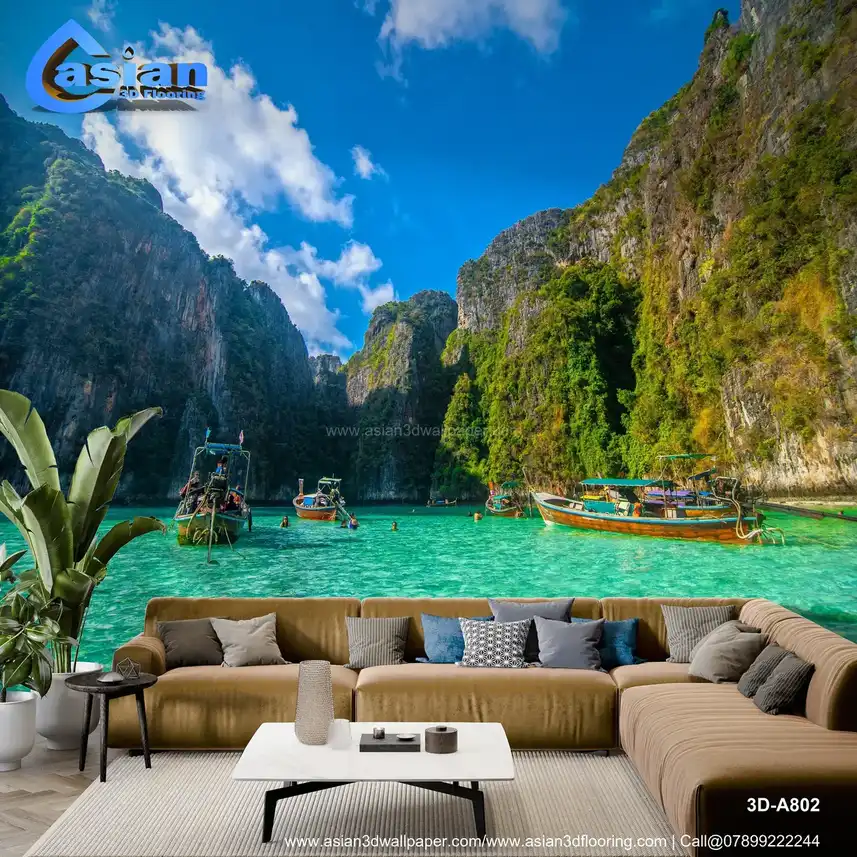 Immerse yourself in this breathtaking view of a tropical paradise, where boats gently glide over crystal-clear waters surrounded by towering cliffs and lush greenery. This vibrant scene captures the essence of serene island life, making it perfect for travel enthusiasts or anyone seeking a touch of the exotic in their decor. Ideal for living rooms, offices, or vacation homes, this artwork invites you to escape to a tranquil oasis. Benefits:- Bring a slice of paradise to your home with this stunning tropical landscape, perfect for creating a calming and inspiring atmosphere.