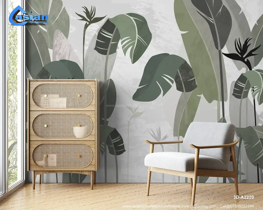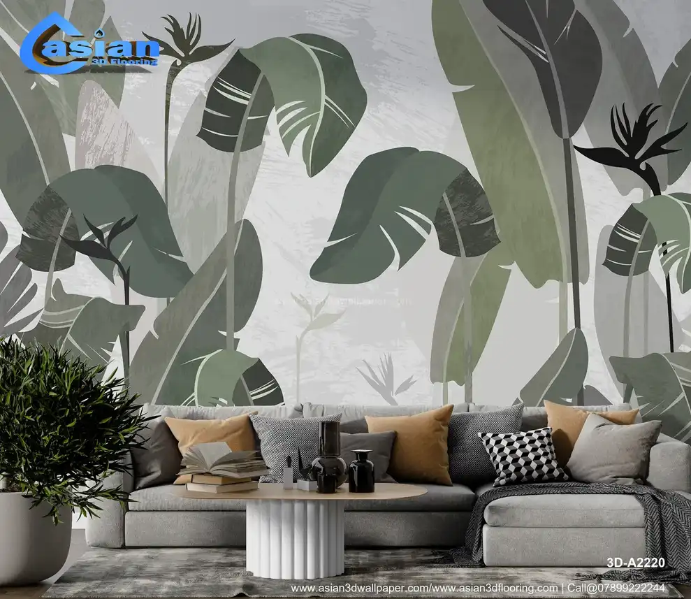 Immerse yourself in the tranquility of a tropical paradise with this stunning wall mural featuring large, stylized tropical leaves in muted green and grey hues. The textured background adds depth and sophistication. Perfect for creating a calming and stylish atmosphere in living rooms, bedrooms, or any space where you want to evoke a sense of natural beauty. Made with high-quality materials for a lasting impression. Transform your home into a tropical oasis with wall murals from our Bangalore, Vijayanagar, Majestic store. Benefits:- Adds a touch of tropical tranquility and modern elegance to your space. Features large, stylized tropical leaves in a calming color palette. Textured background adds depth and sophistication. Made with high-quality materials. Transforms your space into a serene and stylish retreat.