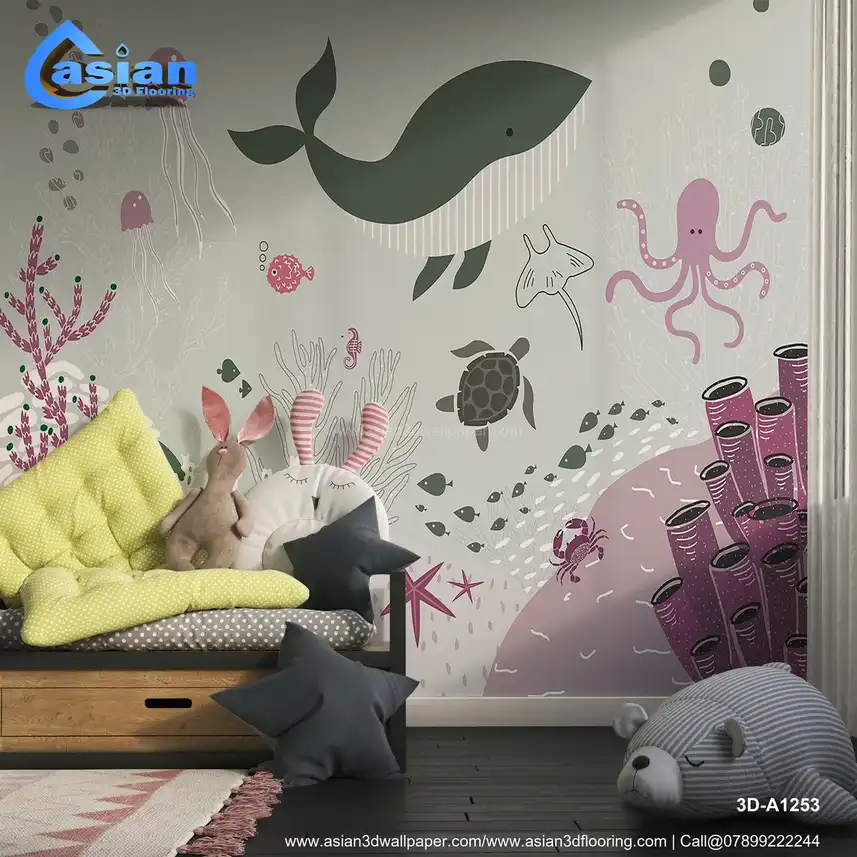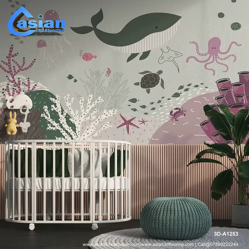 Dive into the depths of the ocean with this charming underwater wallpaper. Featuring friendly sea creatures such as a whale, turtle, jellyfish, octopus, and more, this design brings the vibrant colors of marine life to your walls. The pastel tones of green, pink, and purple create a soothing and whimsical atmosphere, making it perfect for nurseries, children's rooms, or ocean-themed spaces. Let your space come alive with the peaceful beauty of the underwater world. Benefits:- Bring the ocean to life with this playful underwater wallpaper featuring sea creatures and soft pastel colors. Ideal for children's rooms or ocean-themed spaces.