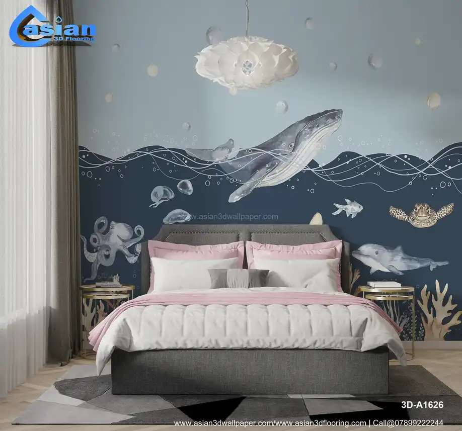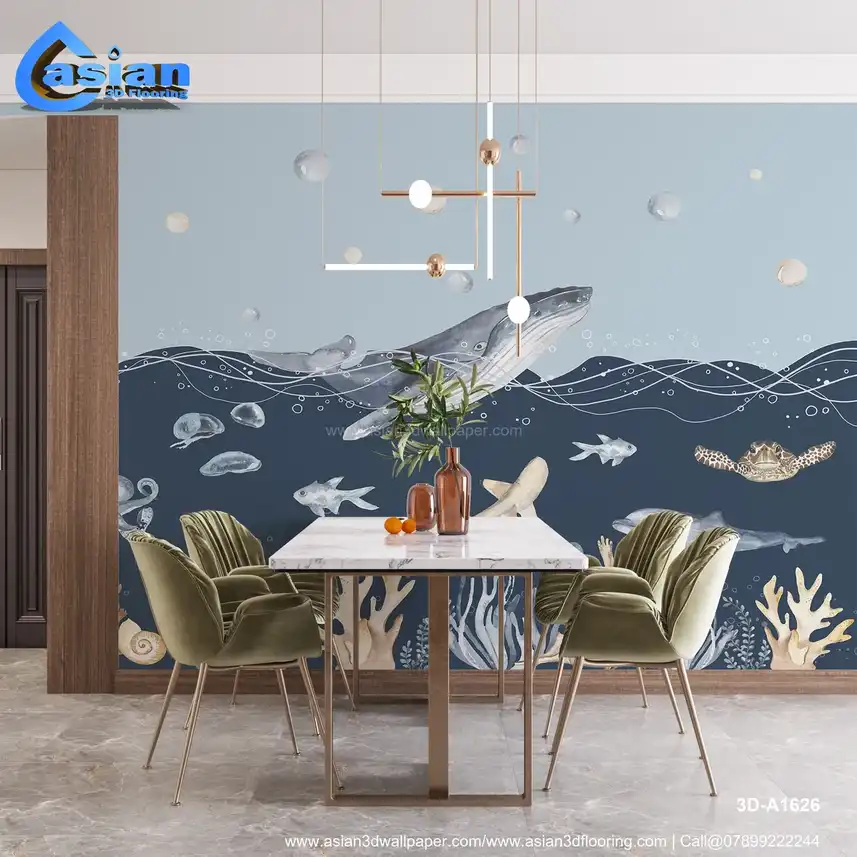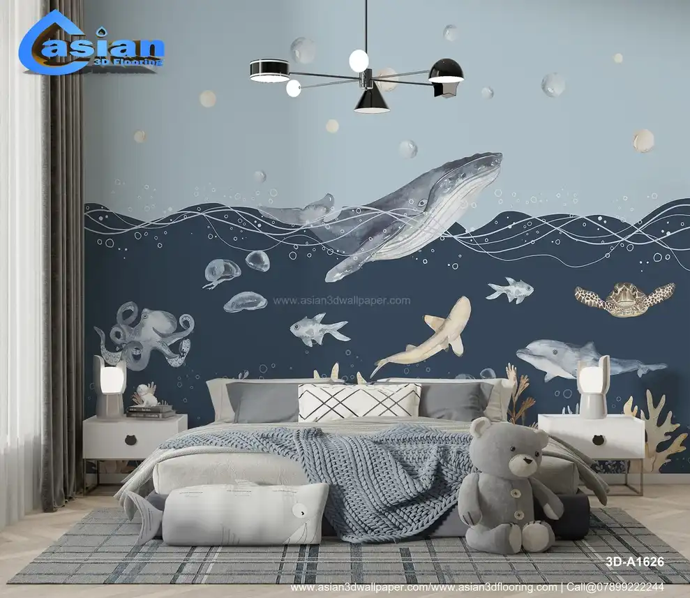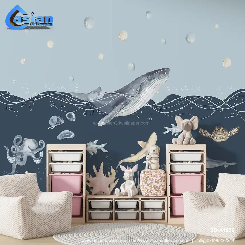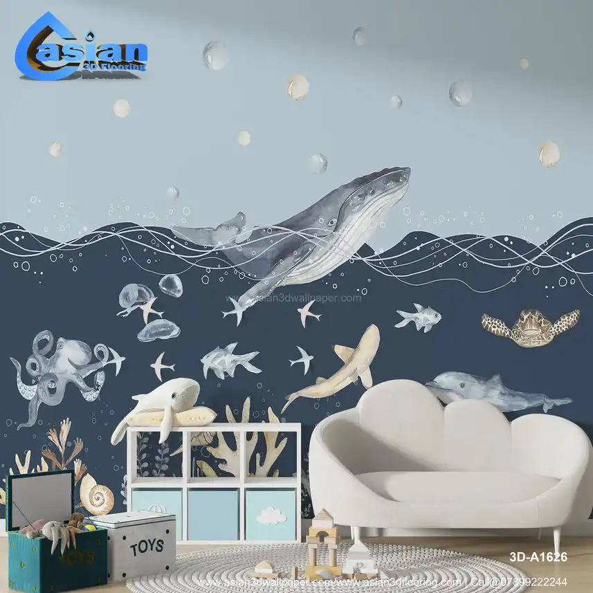 Dive into a peaceful underwater world with this stunning ocean scene wallpaper featuring a whale, dolphins, jellyfish, octopus, and vibrant coral reefs. The soft blue tones and flowing water bubbles create a serene and calming atmosphere. This design brings the beauty and tranquility of the ocean into your home, perfect for living rooms, bedrooms, or kids' rooms. Benefits:- Perfect for creating a peaceful, nature-inspired room with calming ocean creatures and vibrant coral reef design.