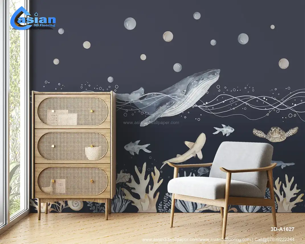 Underwater Ocean Life with Whale and Coral (Dark)||3D-A1627