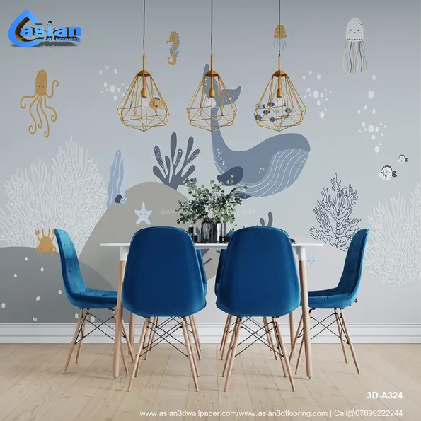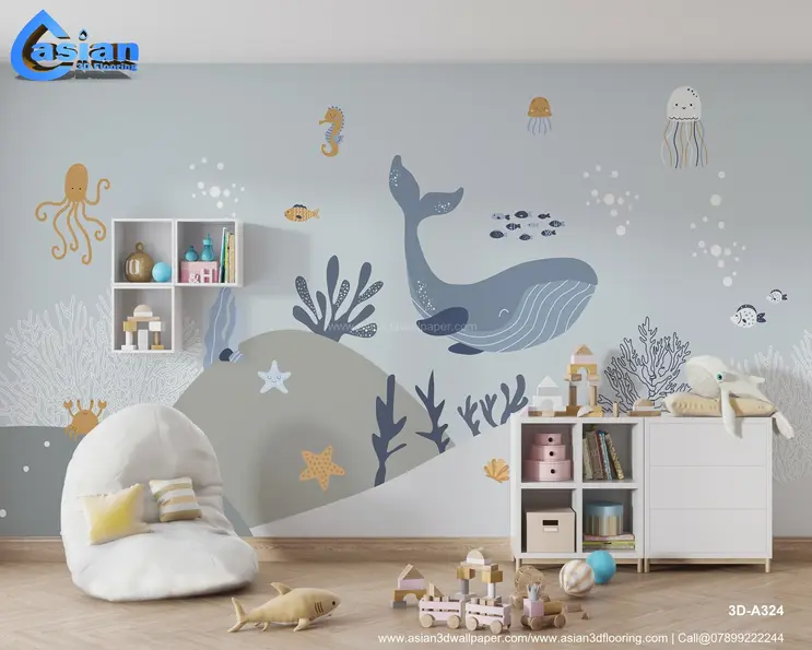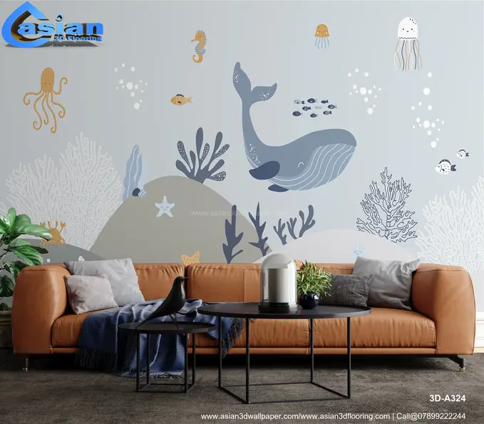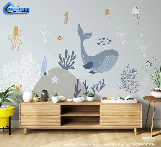 Dive into an underwater adventure with this charming 3D wallpaper featuring friendly sea creatures like whales, jellyfish, seahorses, and fish. The playful design is perfect for adding a touch of the ocean to children's rooms or nurseries. Product Benefits :- This fun and educational wallpaper sparks curiosity about marine life, ideal for children's bedrooms or playrooms.
