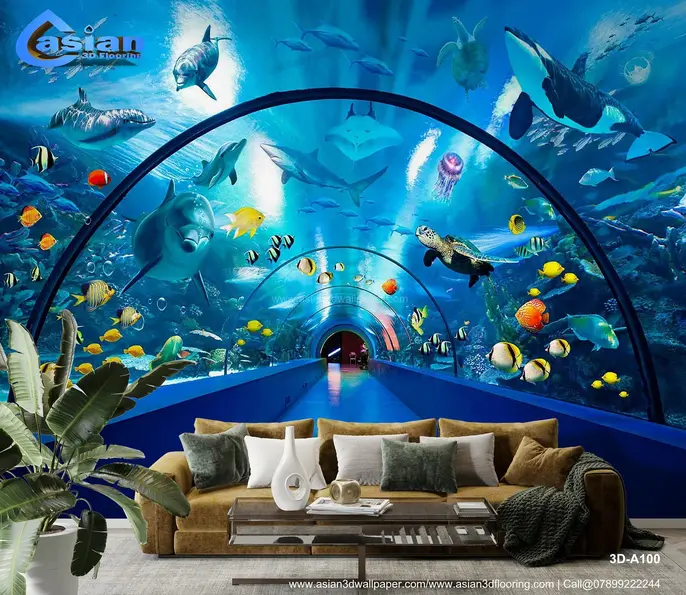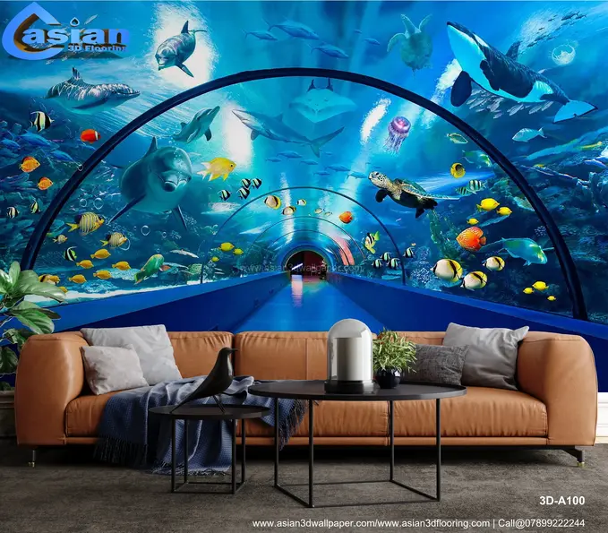 Underwater World Aquatic Life Wallpaper for Kids' Rooms||3D - A100