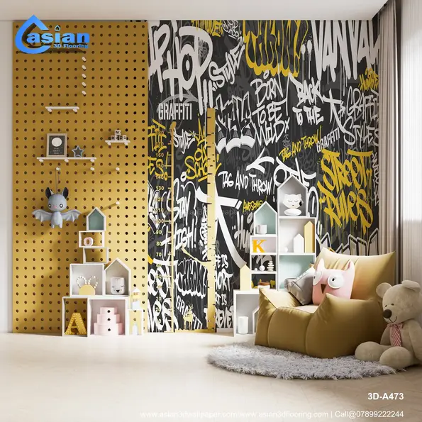 Bring the energy of the streets into your space with this bold graffiti-inspired wallpaper. Featuring classic hip-hop and street art typography in vibrant yellow, white, and grey, this design is perfect for modern, industrial, or urban interiors. It's a statement piece that adds a creative and rebellious flair to any room. Ideal for creating feature walls in living rooms, studios, or entertainment areas. Product Benefits :- Transforms spaces with a dynamic, creative, and urban vibe, making it perfect for contemporary settings.