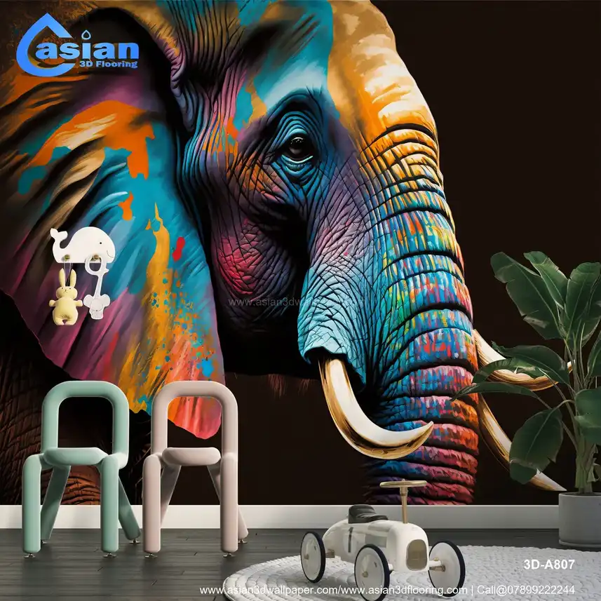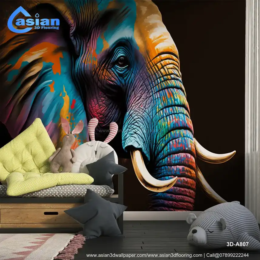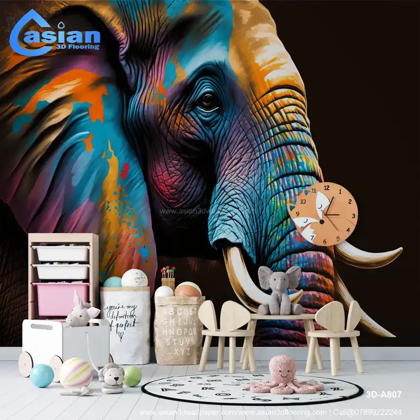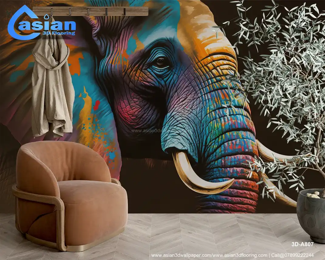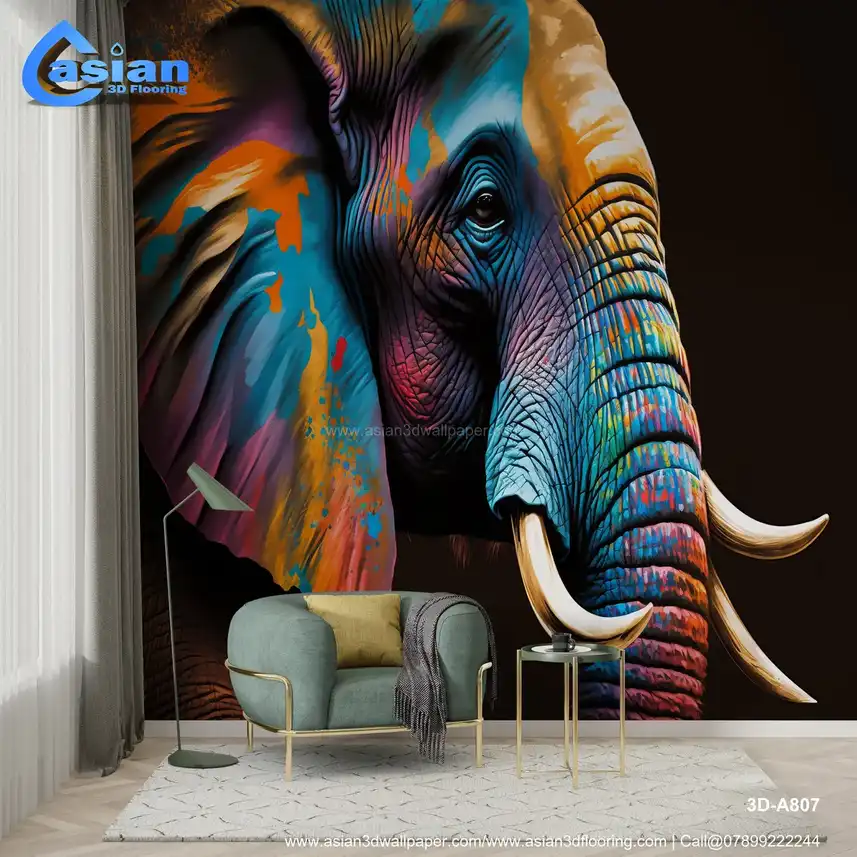 Vibrant Elephant Art Print - Colorful Abstract Elephant Portrait - Striking Wildlife Wall Decor||3D-A807