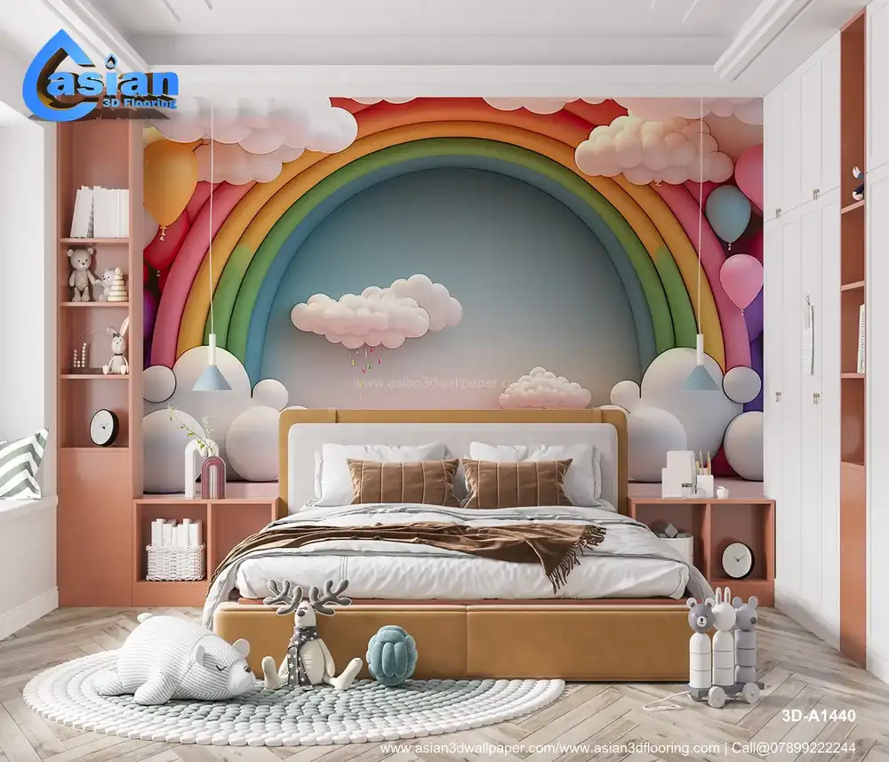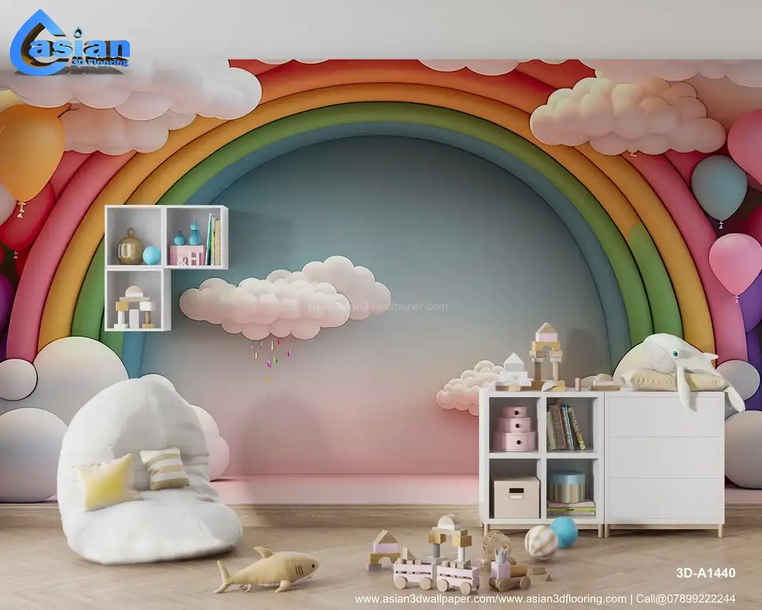 Bring joy and color to any room with this playful rainbow and cloud wall mural. Featuring a dreamy scene with soft pastel hues, colorful balloons, and cheerful clouds, this mural is perfect for nurseries, kids' rooms, or playrooms. Its lighthearted design brings a sense of wonder and fun, creating an inviting and imaginative space. The vibrant rainbow arcs beautifully, creating a whimsical atmosphere that will make your child?s room feel magical. Benefits:- Ideal for creating a whimsical and fun atmosphere in children?s spaces, the mural adds color and energy to any room. Perfect for nurseries or playrooms.