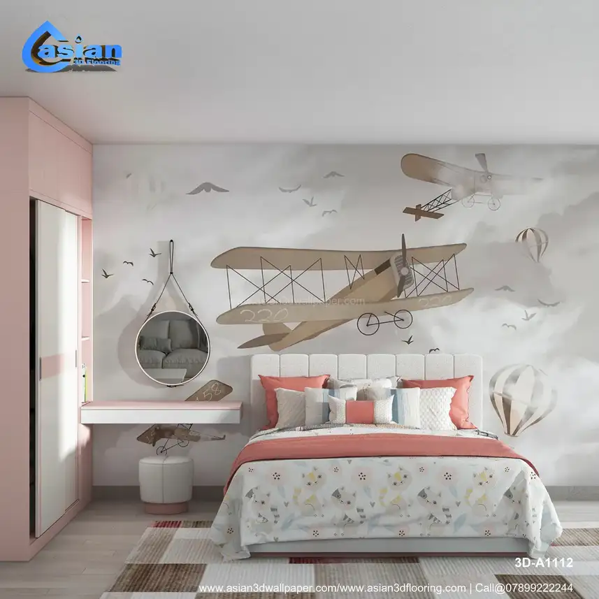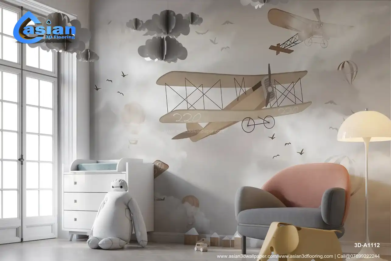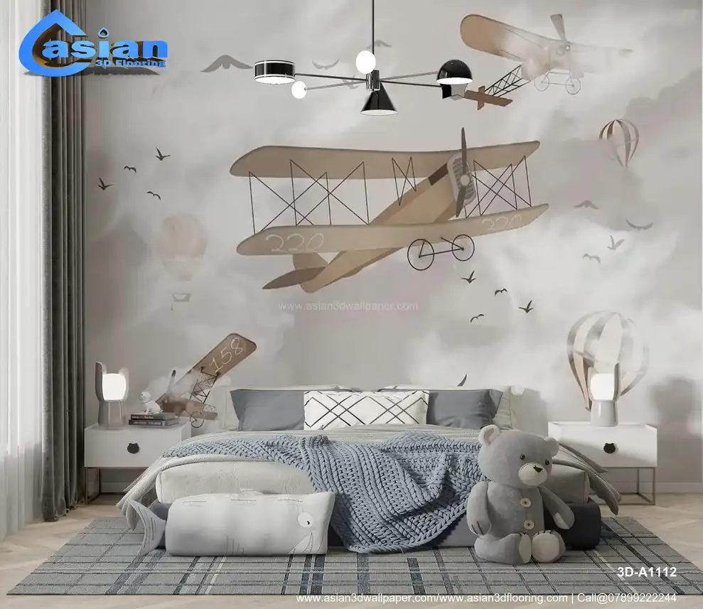Soar into adventure with our Vintage Airplane Wallpaper, a whimsical design perfect for children's rooms or nurseries. Featuring classic biplanes, hot air balloons, and playful birds set against a soft, cloudy backdrop, this wallpaper captures the imagination and adds a touch of nostalgia to any space. Made from high-quality, durable materials, it?s easy to apply and maintain, making it an ideal choice for parents seeking to create a dreamy atmosphere for their little ones. Benefits:- Our Vintage Airplane Wallpaper transforms any child's room into a playful and imaginative environment, inspiring dreams of adventure and exploration.