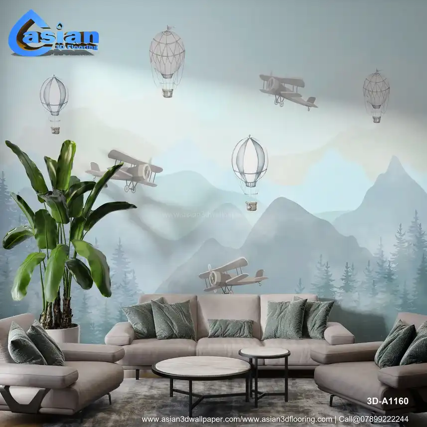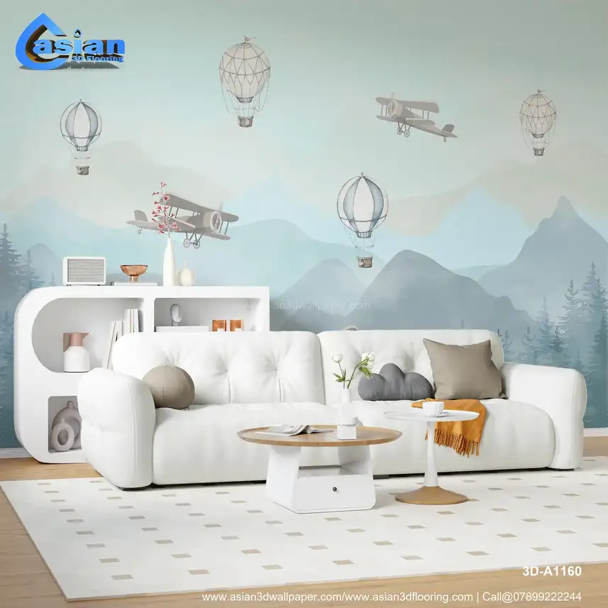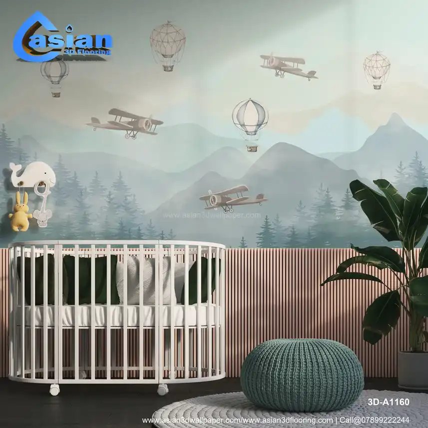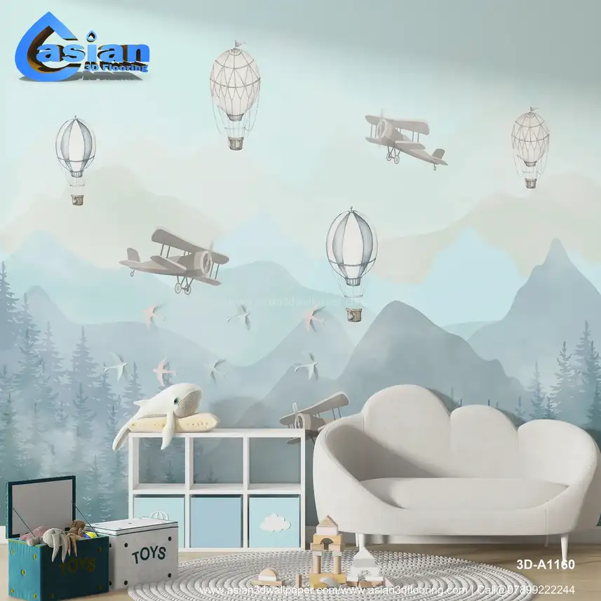 Ignite your child's imagination with our Vintage Airplane and Hot Air Balloon Wallpaper. This enchanting design features whimsical airplanes and hot air balloons soaring over soft blue mountains and trees, creating a dreamy atmosphere perfect for nurseries or playrooms. Crafted from high-quality, eco-friendly materials, this wallpaper is both durable and easy to install. Let your little ones embark on imaginative journeys every day with this beautiful decor that brings adventure to life. Benefits:- Transform your child's room into a whimsical adventure space with our Vintage Airplane and Hot Air Balloon Wallpaper, designed to inspire creativity and exploration.