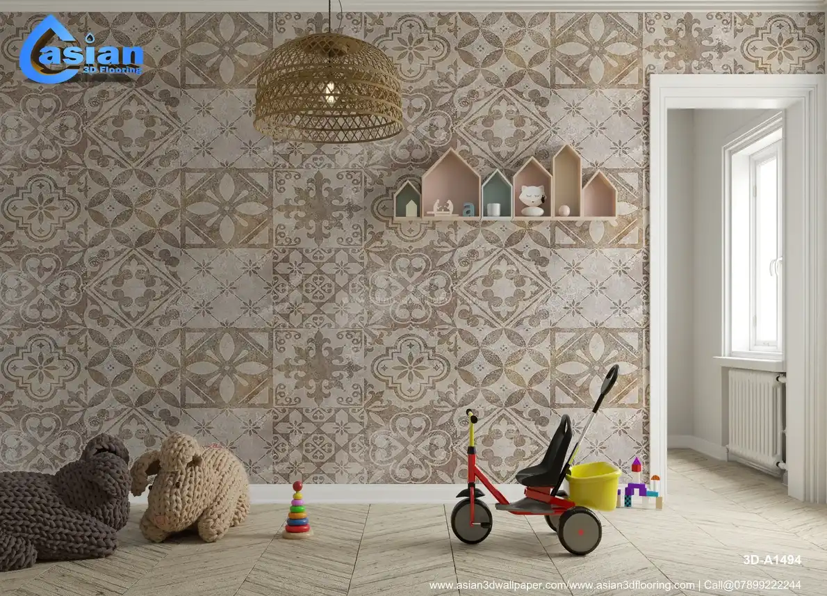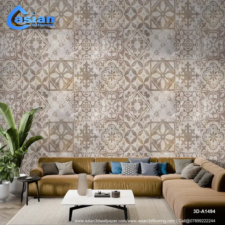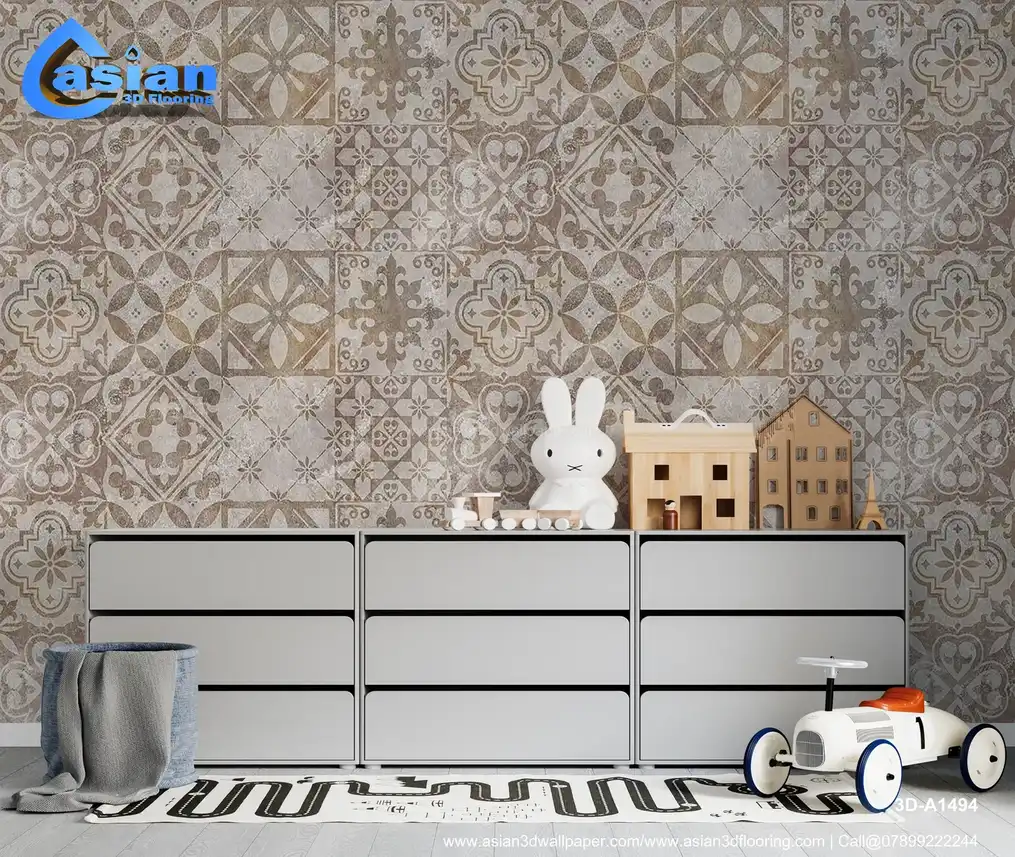 Vintage Geometric Tile Wallpaper in Warm Tones||3D-A1494