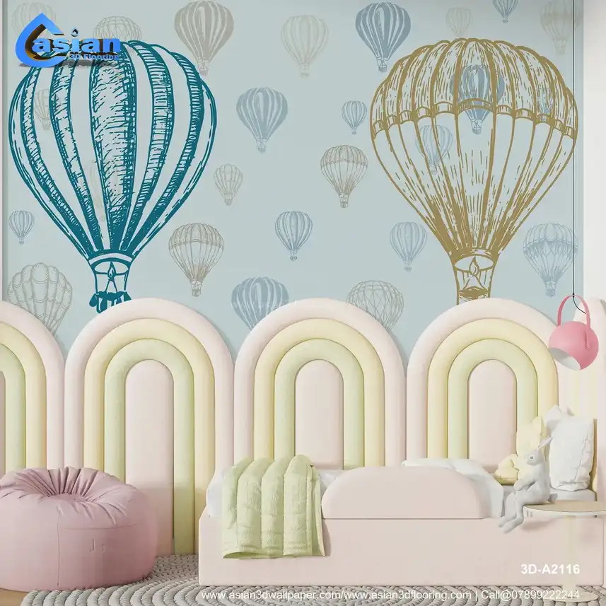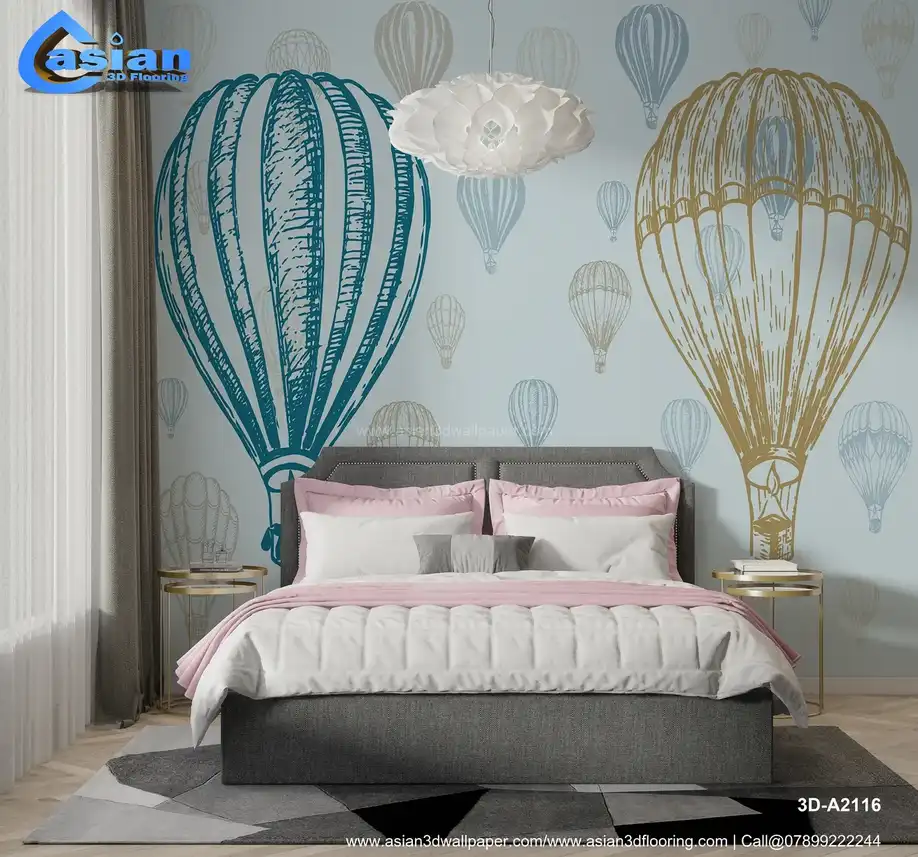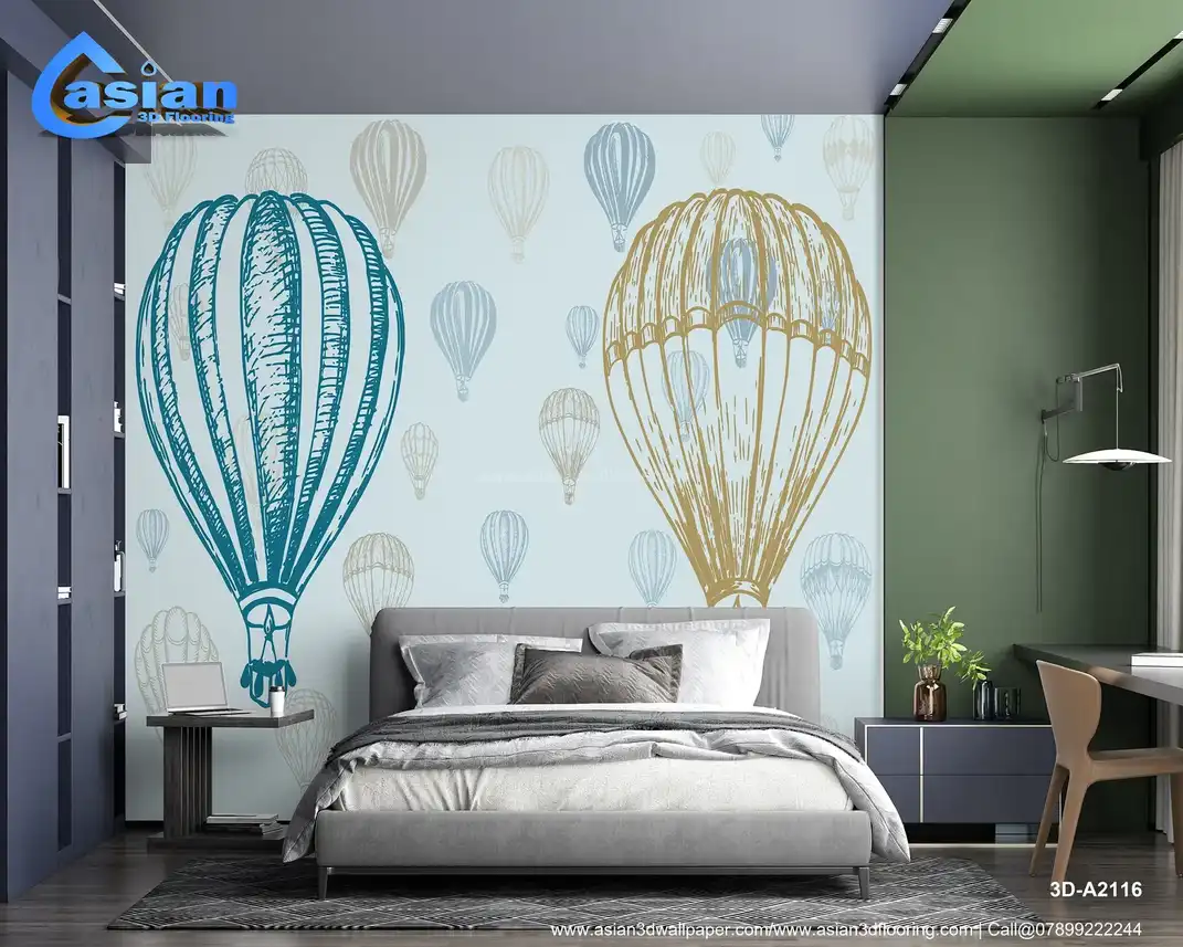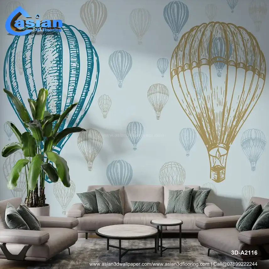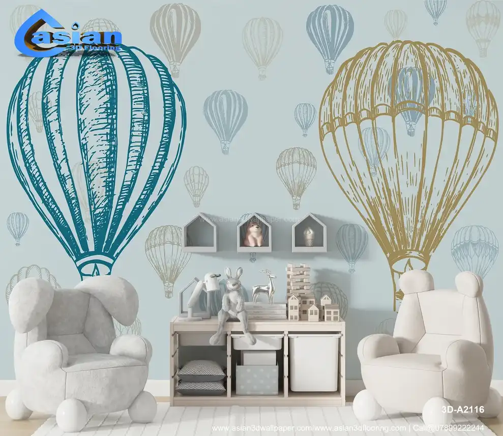 Vintage Hot Air Balloons - Blue & Beige Whimsical Pattern||3D-A2116