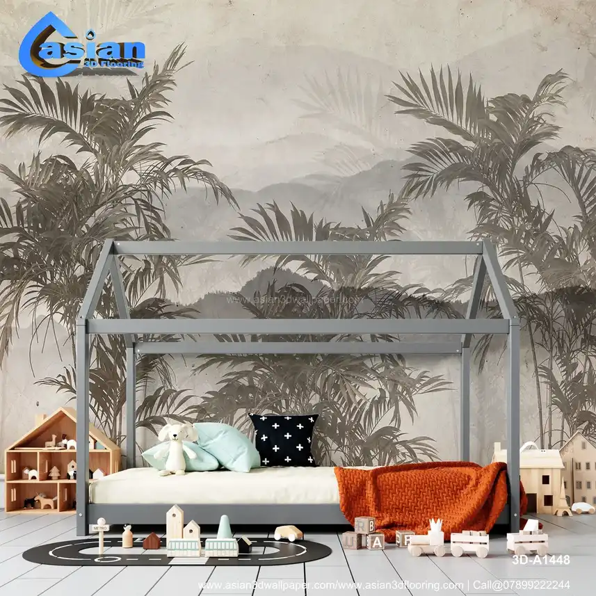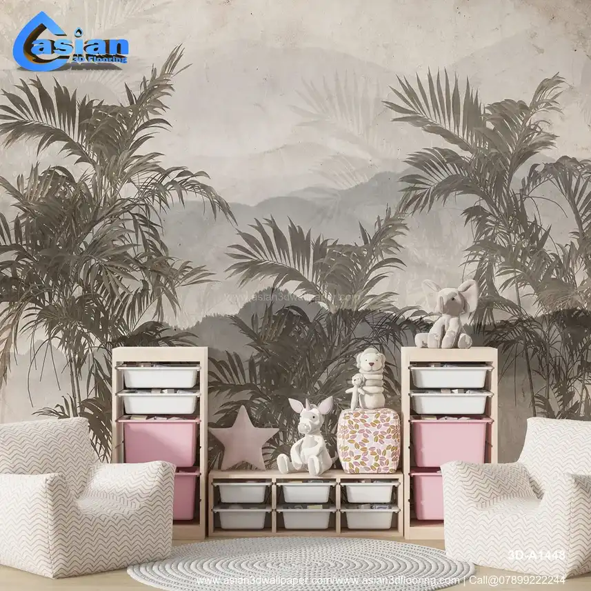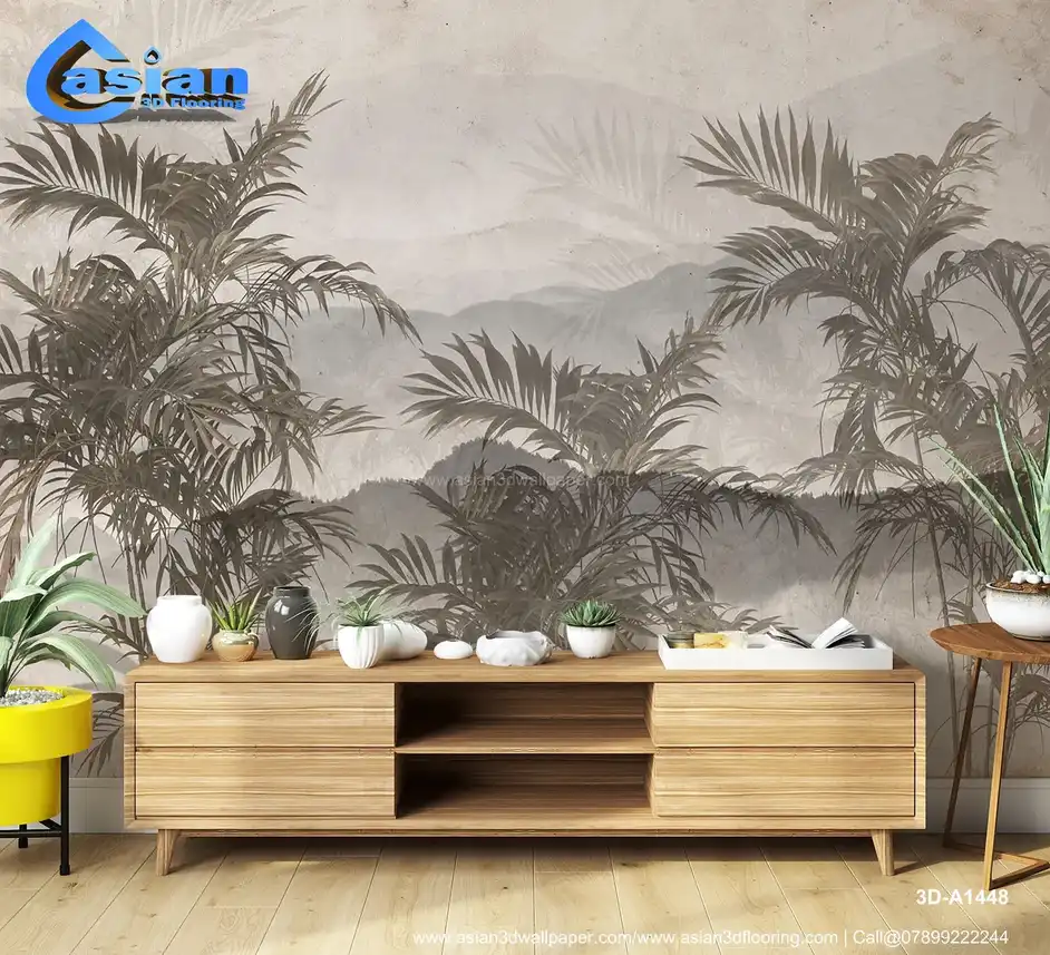 This elegant wallpaper features vintage-style palm leaves set against a soft, misty backdrop of distant mountains. The monochromatic tones of grey and beige create a tranquil and sophisticated atmosphere. Ideal for adding a serene, nature-inspired vibe to any room, this design evokes a peaceful and timeless feel. Benefits:- Brings a soothing, calm, and nature-inspired atmosphere to your space, ideal for creating a peaceful retreat. Perfect for bedrooms, living rooms, or serene spaces.