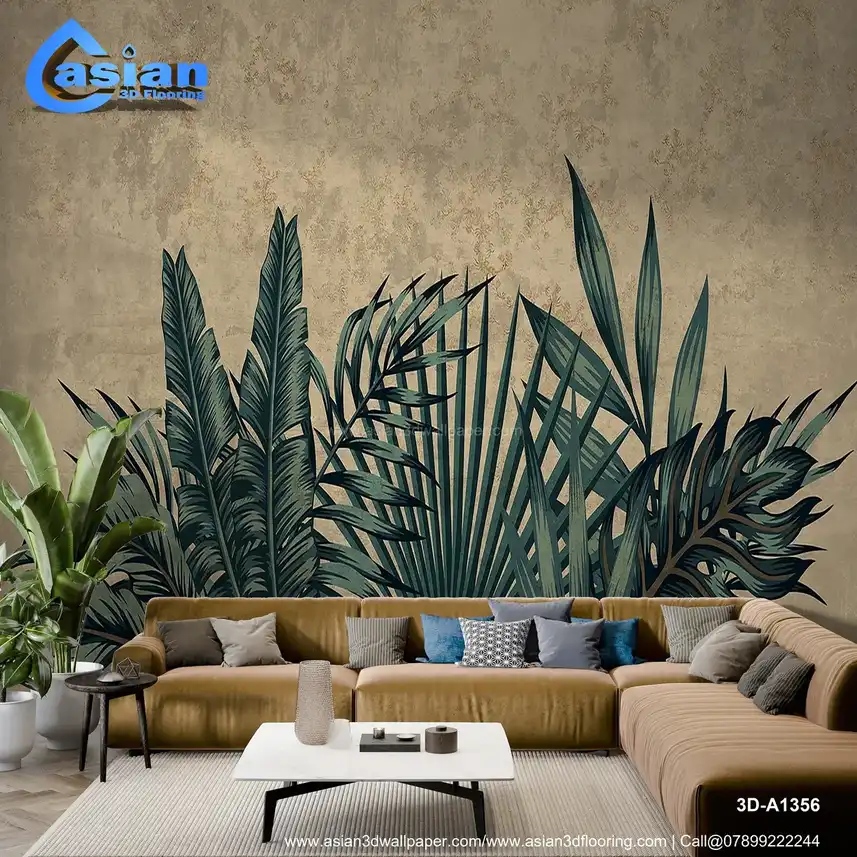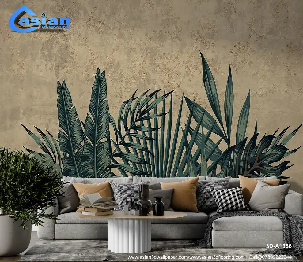 Vintage Palm Leaves on Textured Background Wallpaper||3D-A1356