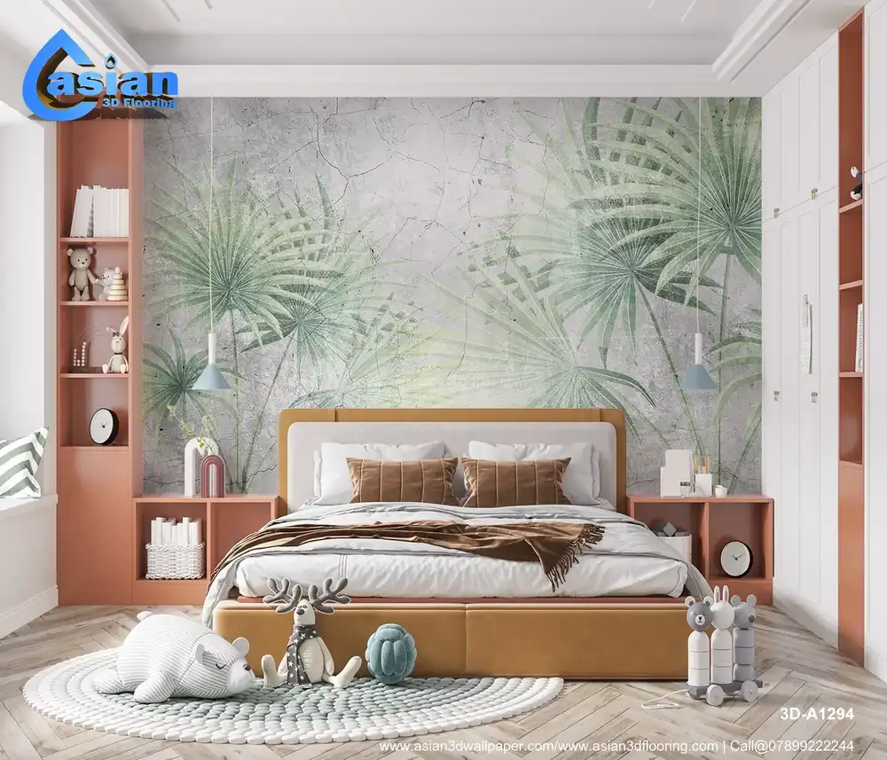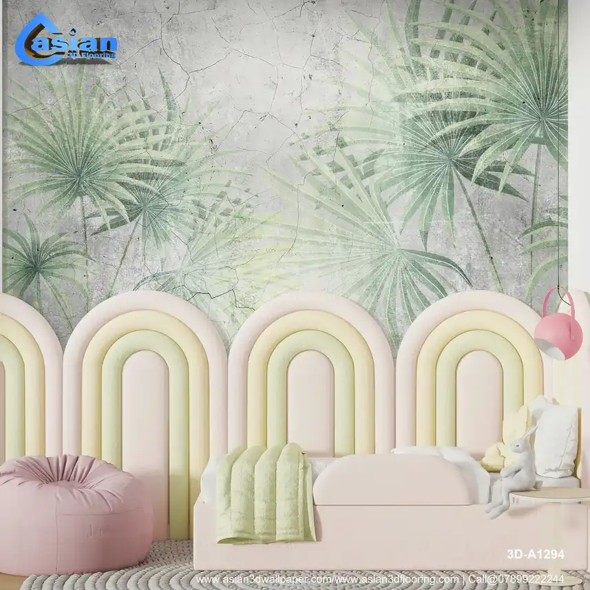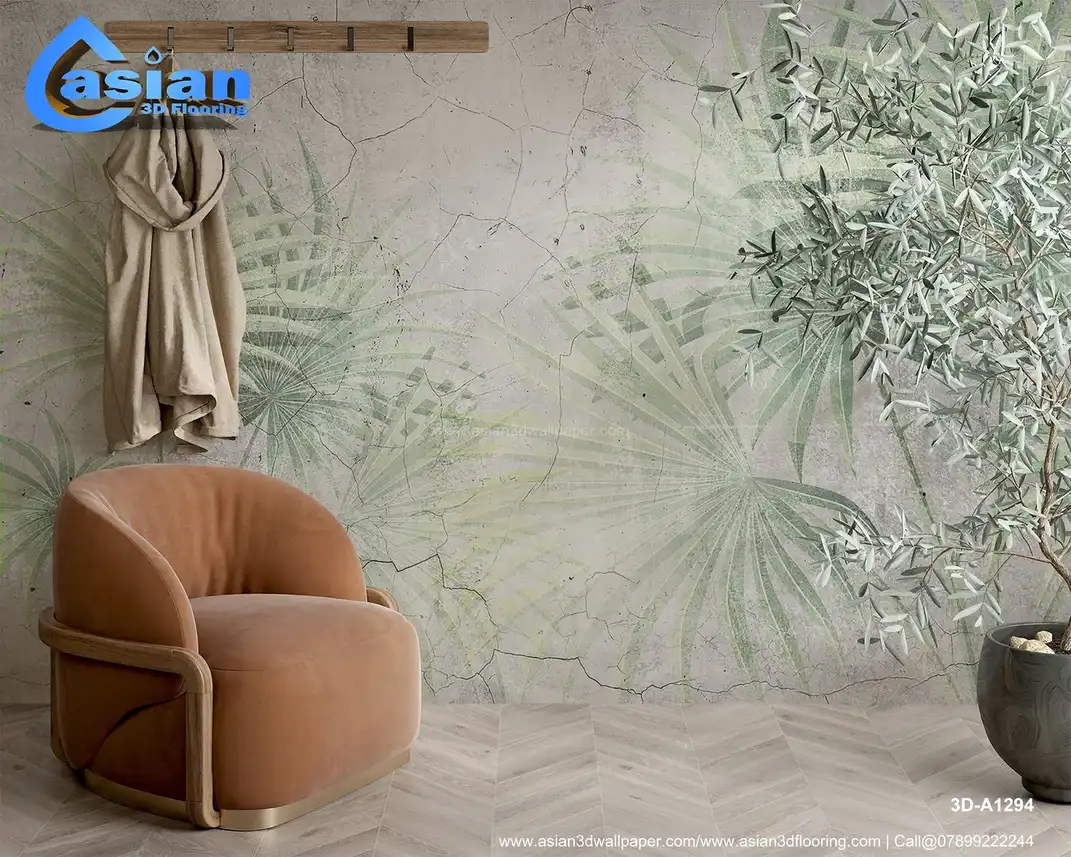 This elegant wallpaper design features palm tree fronds set against a textured, cracked concrete backdrop. The soft green hues of the palm leaves create a natural and calming contrast with the rugged, vintage-inspired concrete. The design is perfect for bringing a tropical touch to any room while maintaining an earthy, vintage aesthetic. Ideal for living rooms, bedrooms, or creative spaces, this wallpaper evokes a sense of nature's tranquility in an industrial setting. Benefits:- A soothing palm tree design set against a cracked concrete background, offering a calming, vintage vibe for any space.