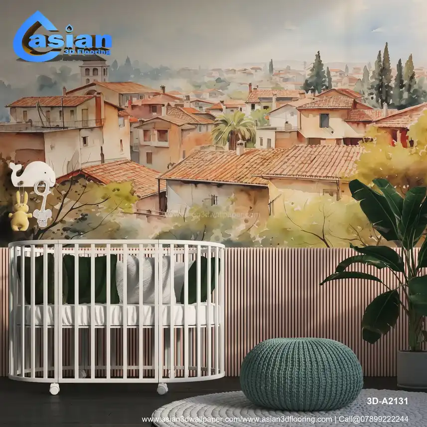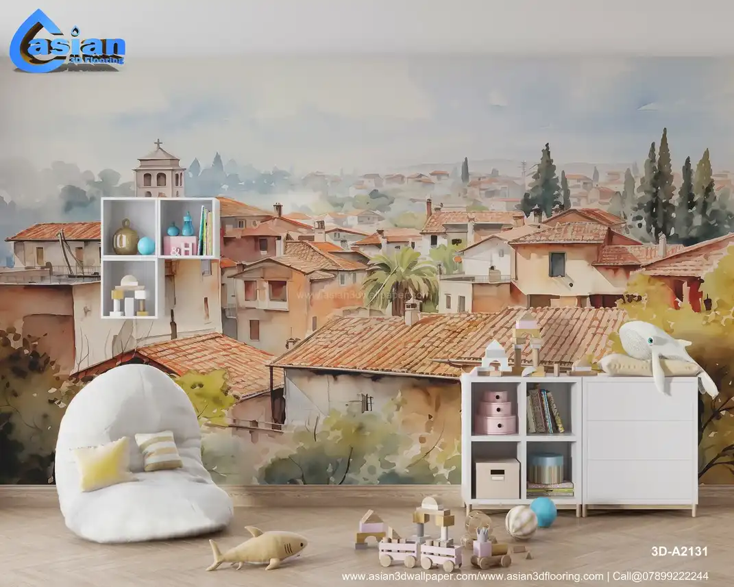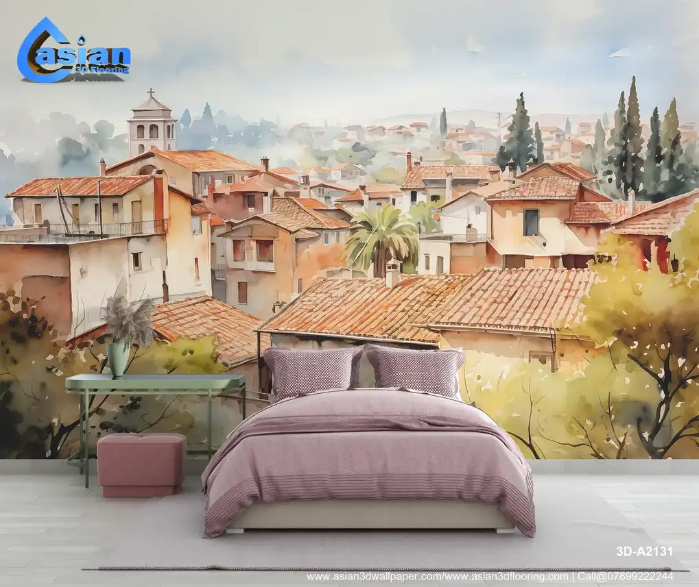 Watercolor Painting of a European Town - Charming Village Scene||3D-A2131