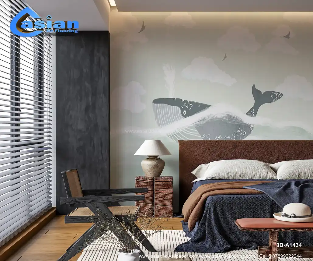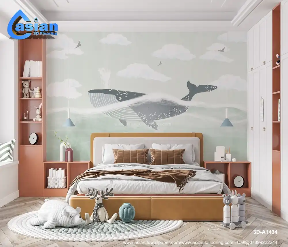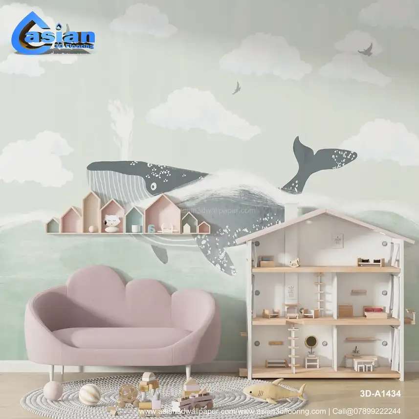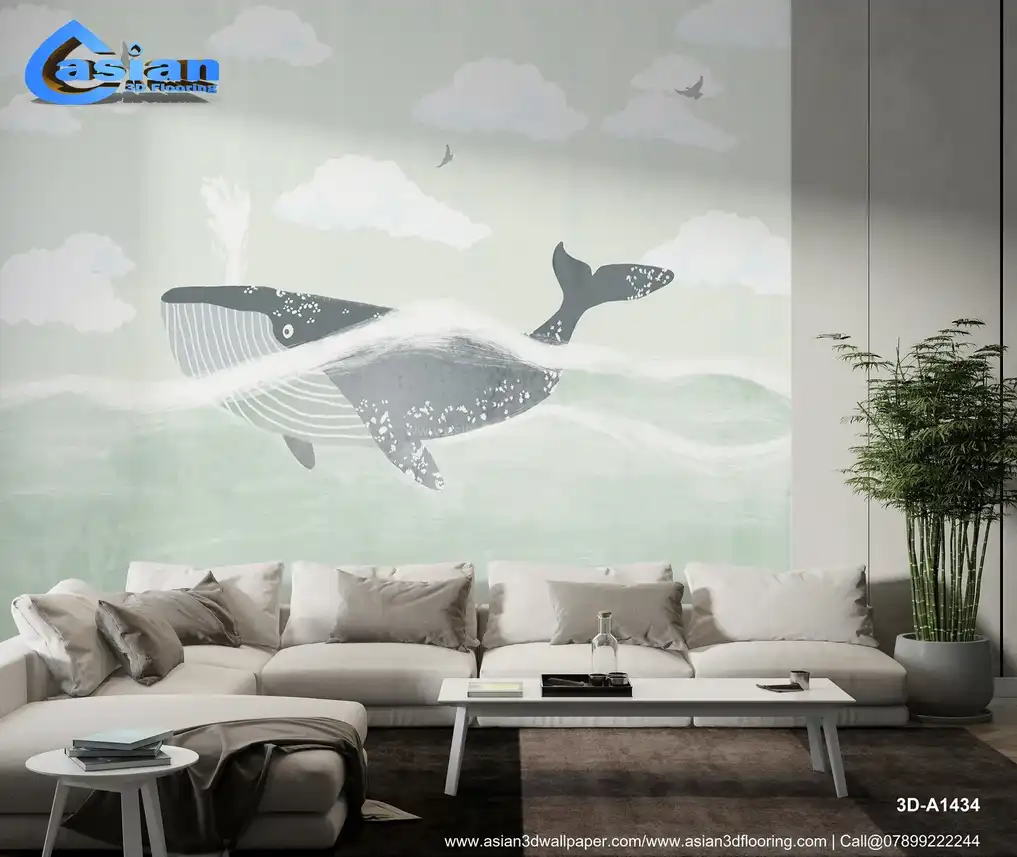 Add a touch of serenity to your space with this beautifully designed wall mural featuring a majestic whale gliding through the ocean. Surrounded by soft, fluffy clouds and gentle waves, this design is perfect for creating a peaceful atmosphere in any room. Ideal for children's bedrooms, bathrooms, or relaxation areas, this mural brings the calming beauty of the sea indoors with its pastel tones and whimsical charm. Benefits:- Adds a calming and peaceful atmosphere, perfect for creating a tranquil retreat in bedrooms or bathrooms.