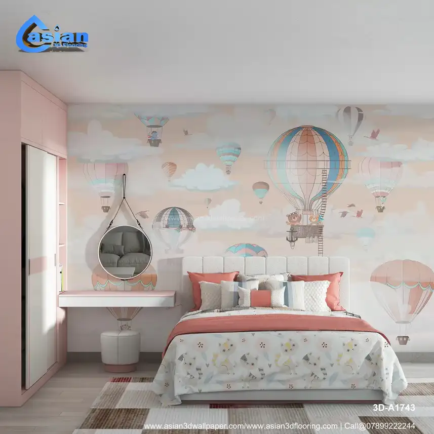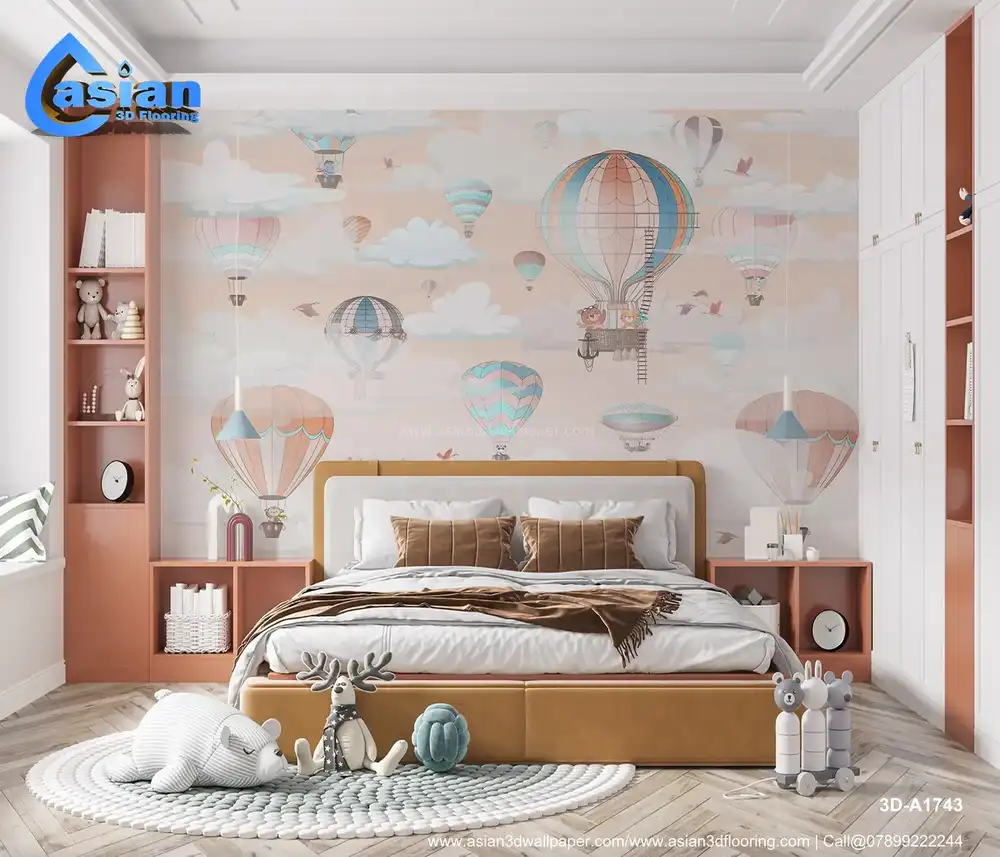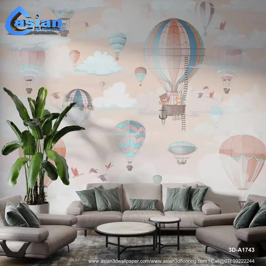 Whimsical Hot Air Balloon Kids Wallpaper||3D-A1743