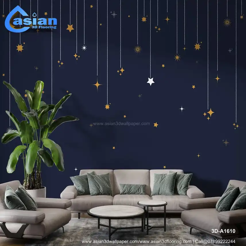 Transform your space into a dreamy night sky with this whimsical starry wallpaper. Featuring stars in varying sizes and vibrant golden tones hanging against a deep navy background, this design brings a touch of magic to any room. Perfect for bedrooms, nurseries, or any space where you want to create a sense of wonder and serenity. This wallpaper is perfect for creating a calming, starry ambiance that makes your room feel like a peaceful night under the stars. Benefits:- This magical starry wallpaper creates a dreamy atmosphere, with golden stars shining against a dark sky. Ideal for a peaceful bedroom or a nursery. Its calming yet enchanting design transforms your room into a celestial haven.