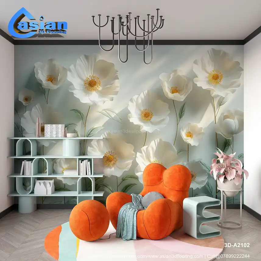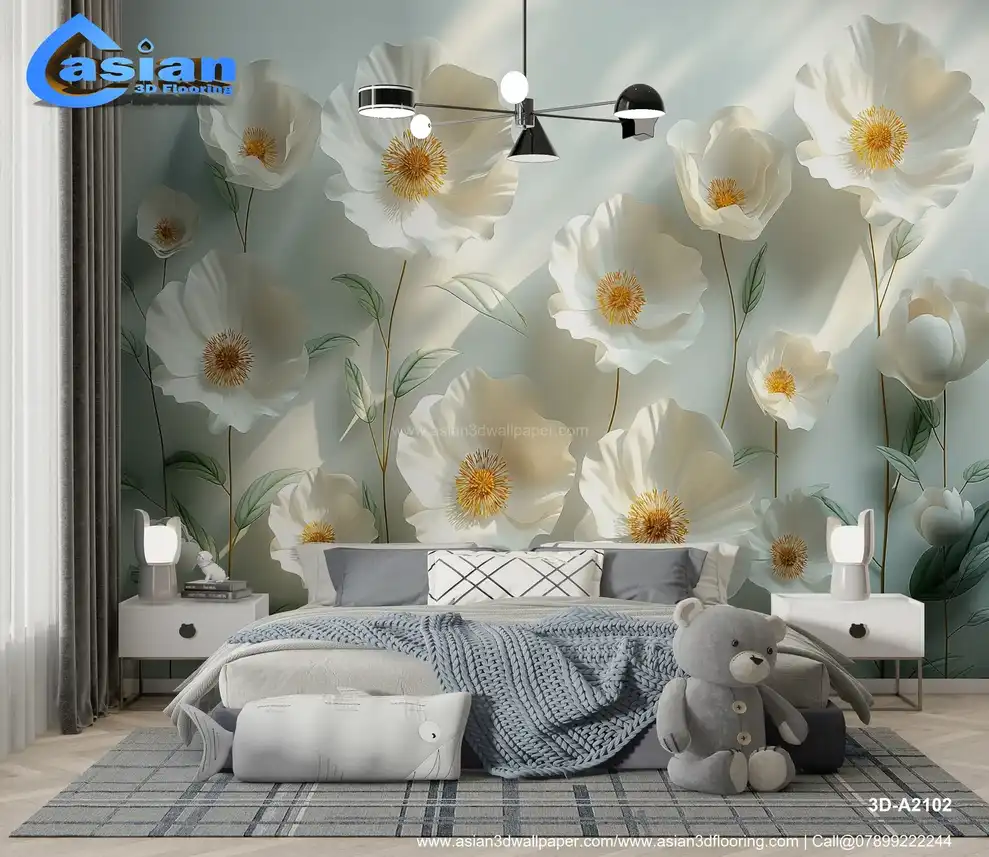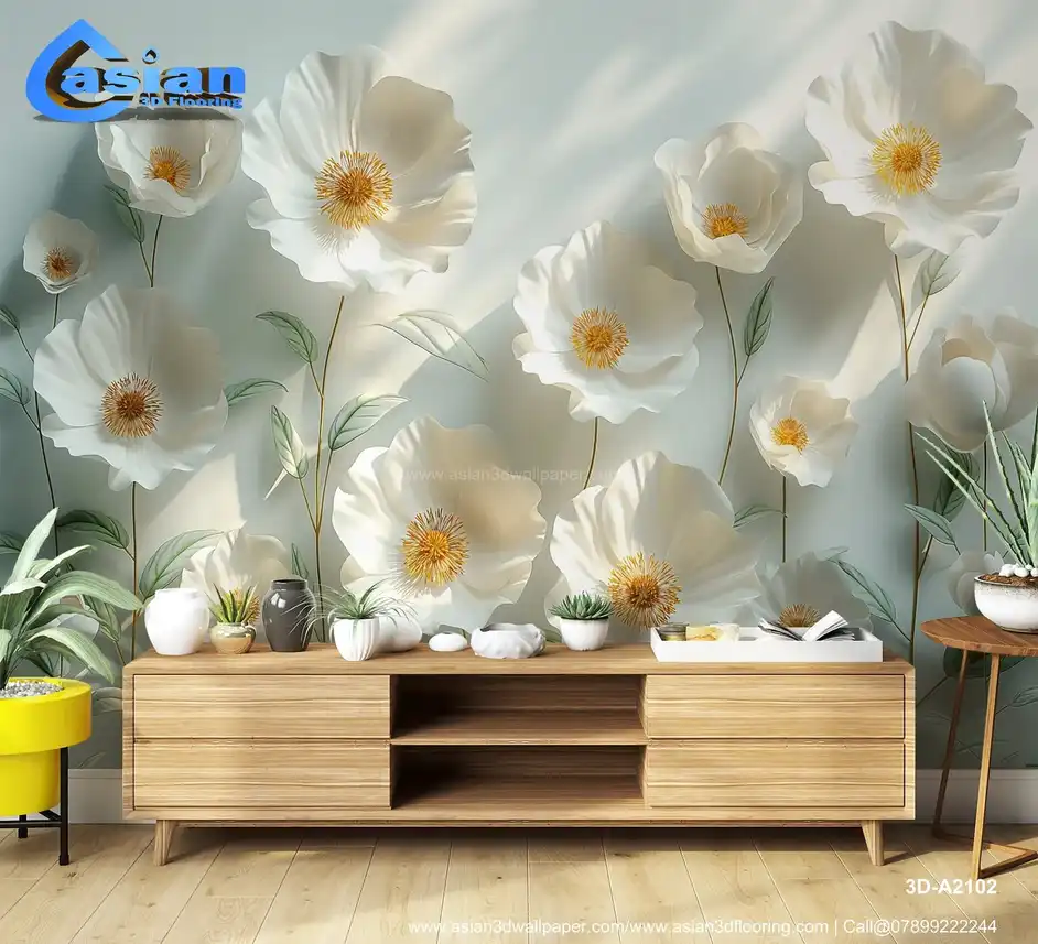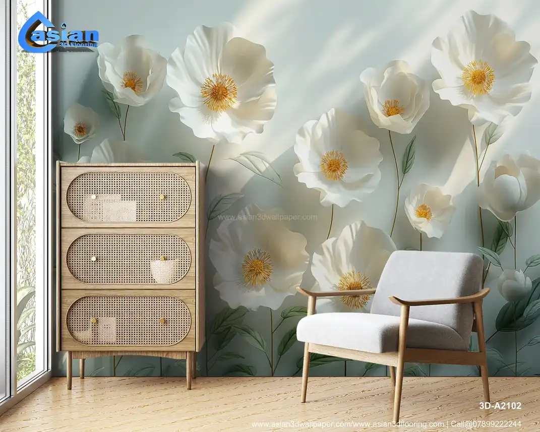 White Flowers with Yellow Centers - Elegant Floral Wallpaper||3D-A2102