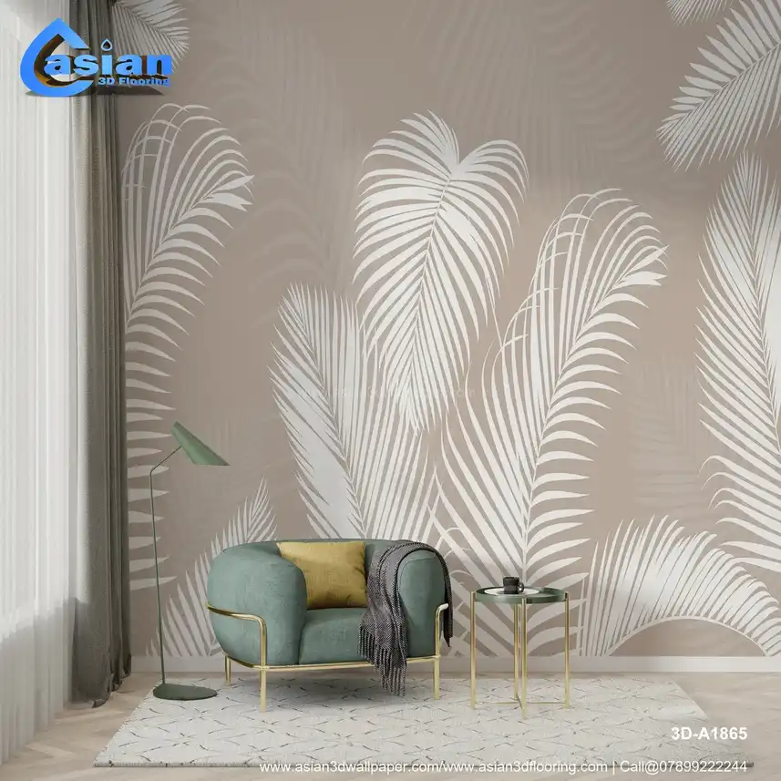 A stylish white palm leaves design on a soft beige background. This wallpaper brings a serene tropical vibe to any space, with a calming and natural aesthetic. Ideal for bedrooms, living rooms, or offices looking to embrace nature and minimalism. Benefits:- Elegant white palm leaves design on a beige backdrop adds a peaceful, tropical ambiance. Perfect for a calm and minimalistic space.