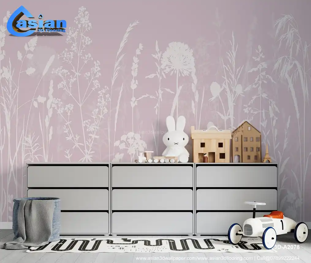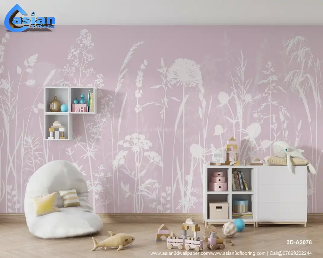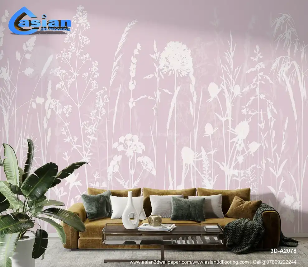 White Wildflower & Grass Silhouettes on Pink - Delicate Floral Wallpaper||3D-A2078