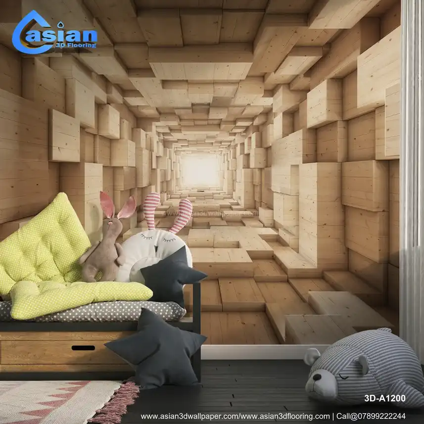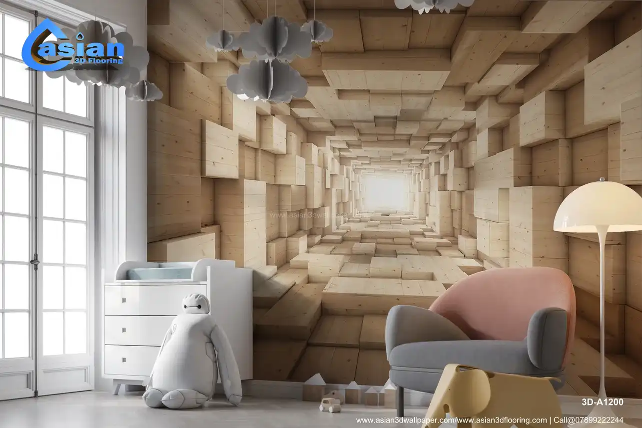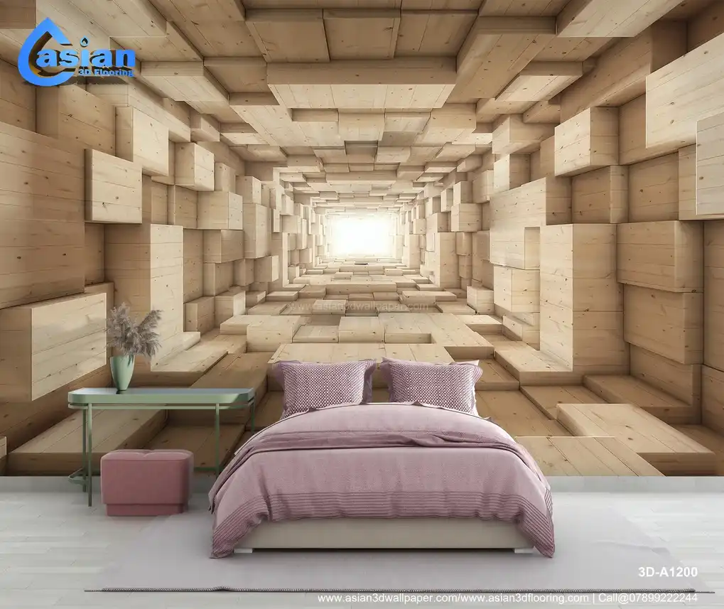 Wooden Tunnel Wallpaper - Modern 3D Design||3D-A1200
