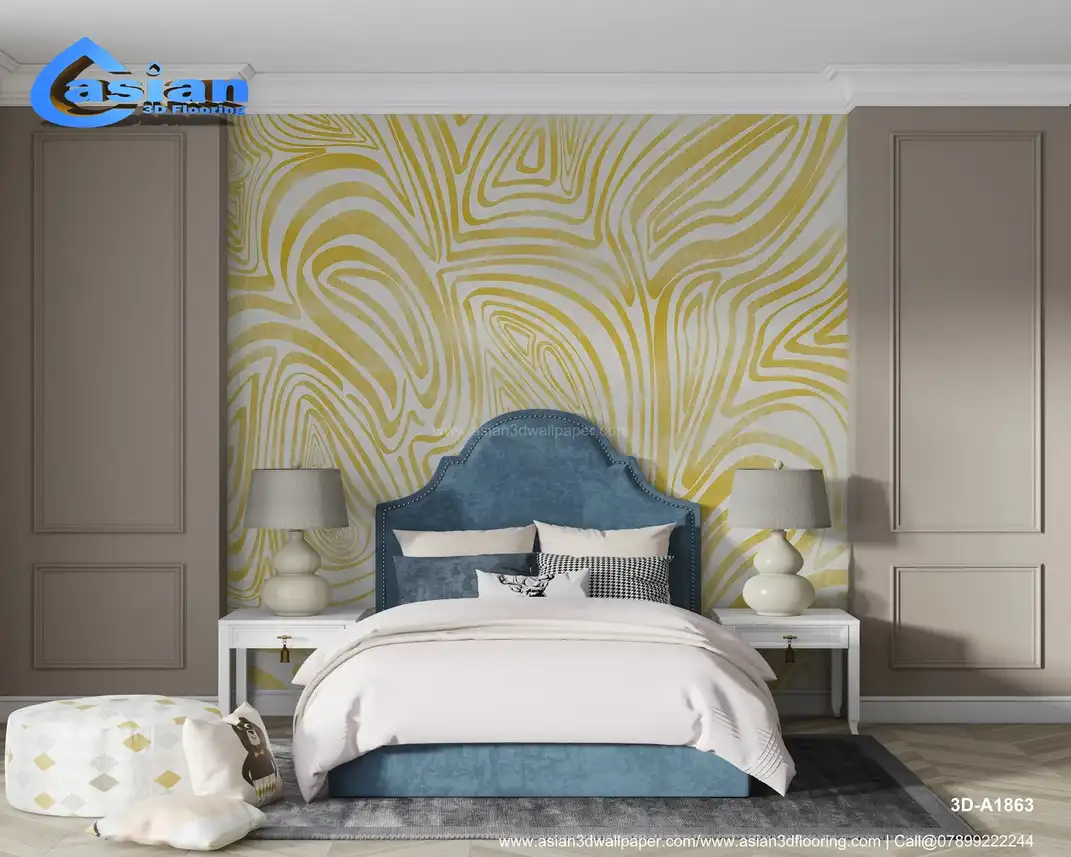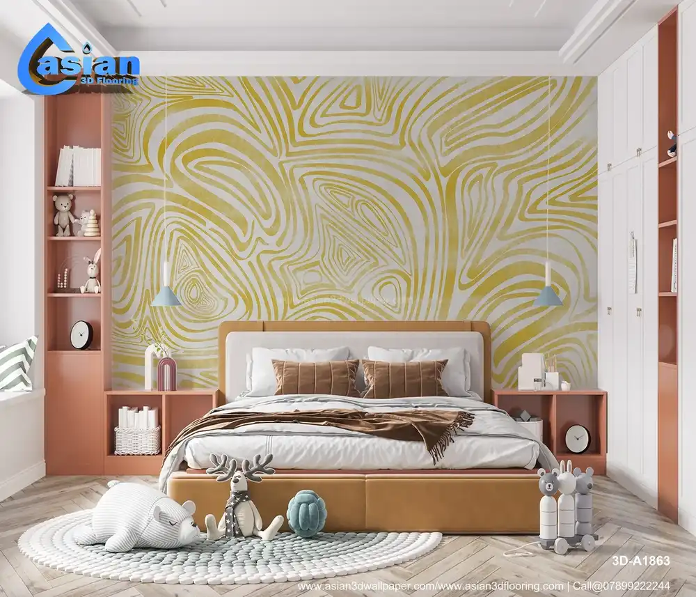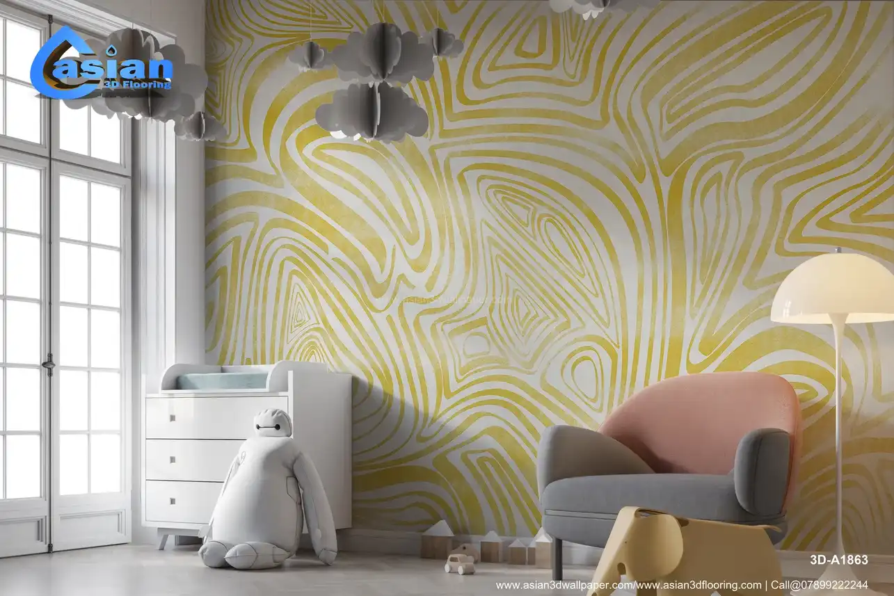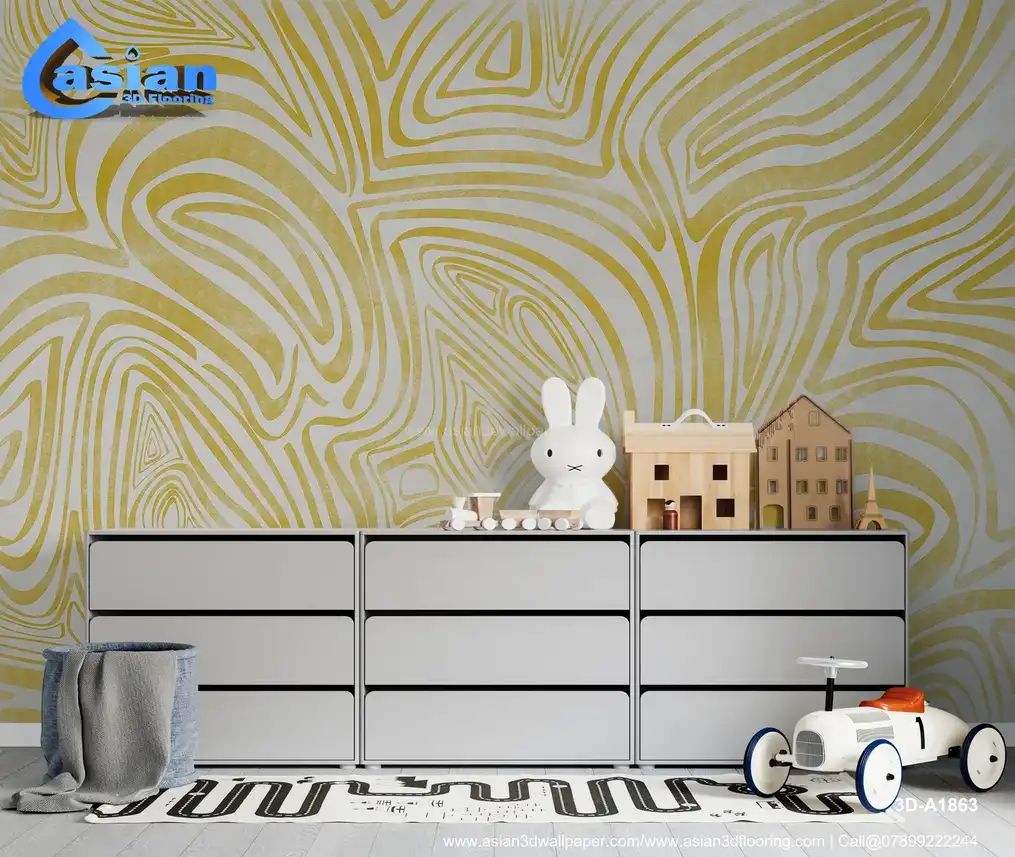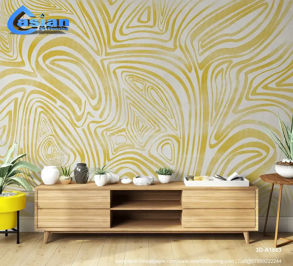 Yellow Abstract Line Art Wallpaper ? Warm Fluid Design||3D-A1863