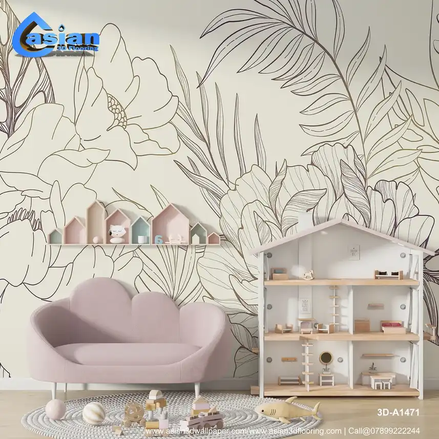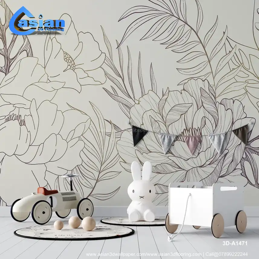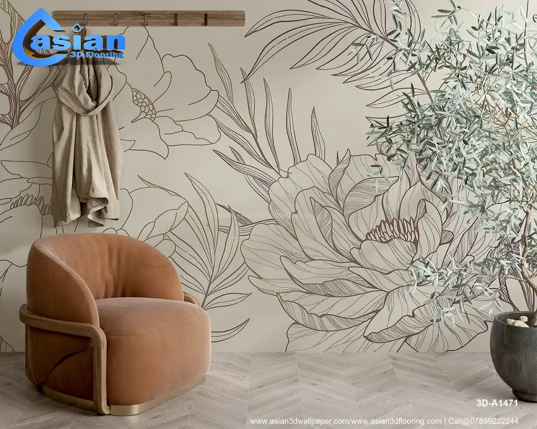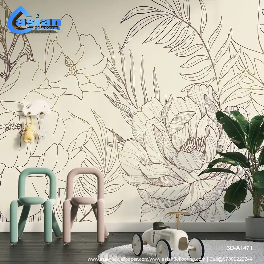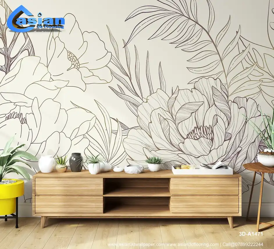Elegant Floral Line Art Wallpaper||3D-A1471