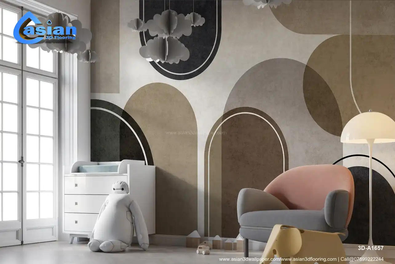 This abstract wallpaper features bold geometric shapes in a neutral earthy color palette. Perfect for adding a modern and artistic touch to any living space. Benefits:- The perfect abstract design with earthy tones, blending geometric shapes for a modern artistic look.