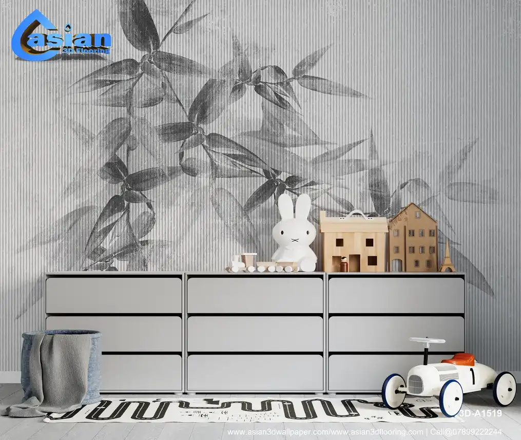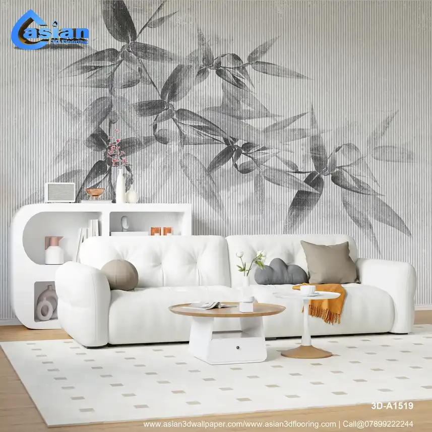 Black and White Bamboo Leaves Wallpaper||3D-A1519